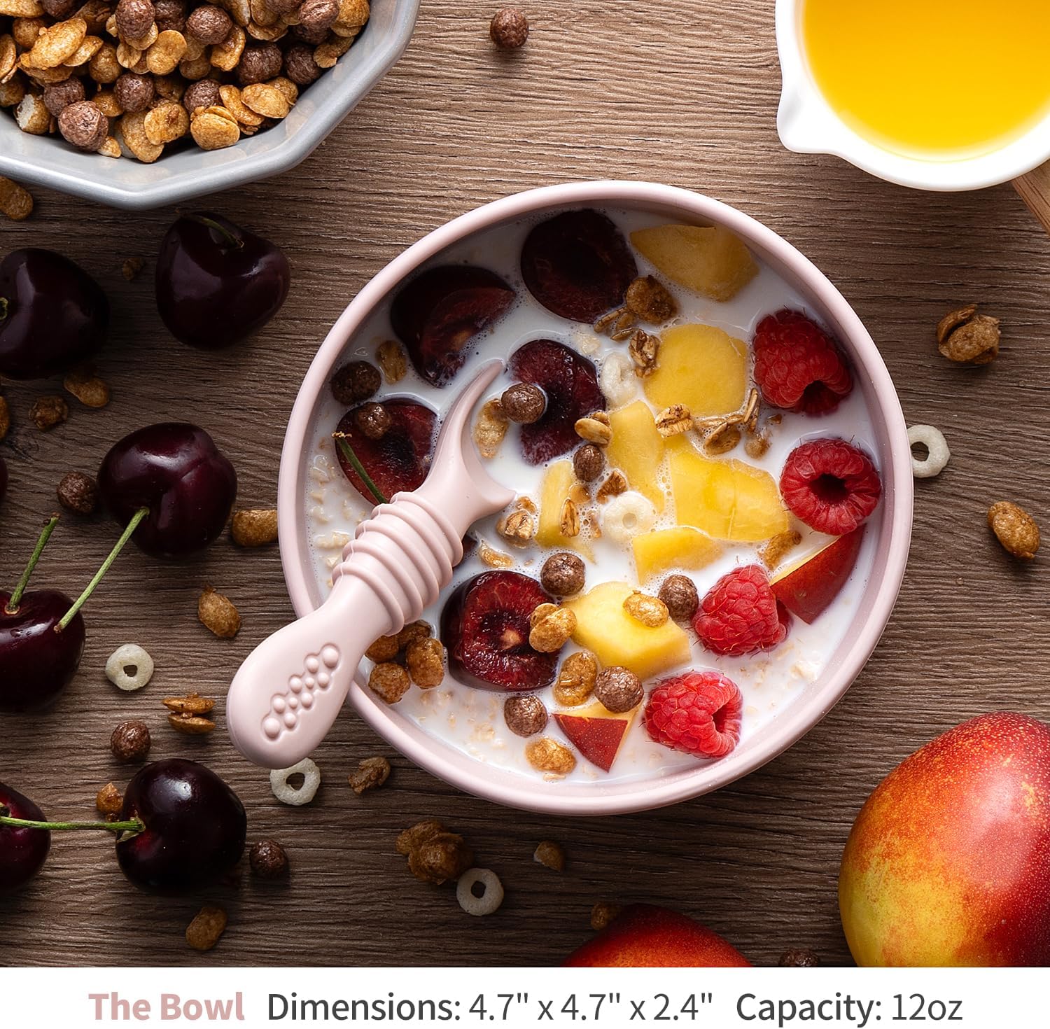 SAMiGO Silicone Baby Bowl and Spoon Set with Suction and Lid, First Stage Self Feeding Essentials, Food Bowl for 6+ Months
