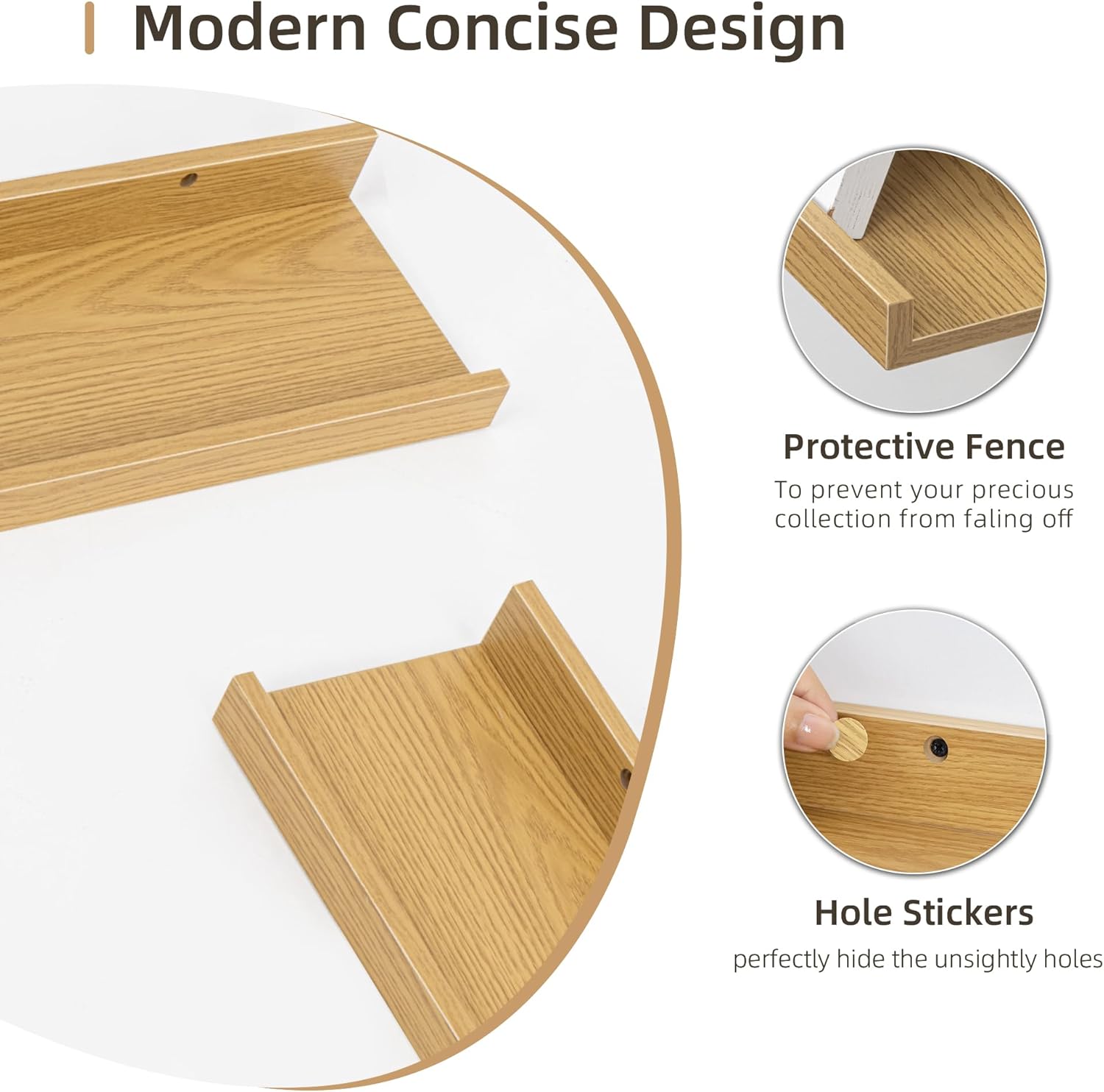 - ăSuperior Qualityă Crafted from high-quality wood, each floating shelf is designed for long-lasting durability. The pre-drilled mounting holes are spaced 16 inches apart, ensuring a secure installation into wall studs.