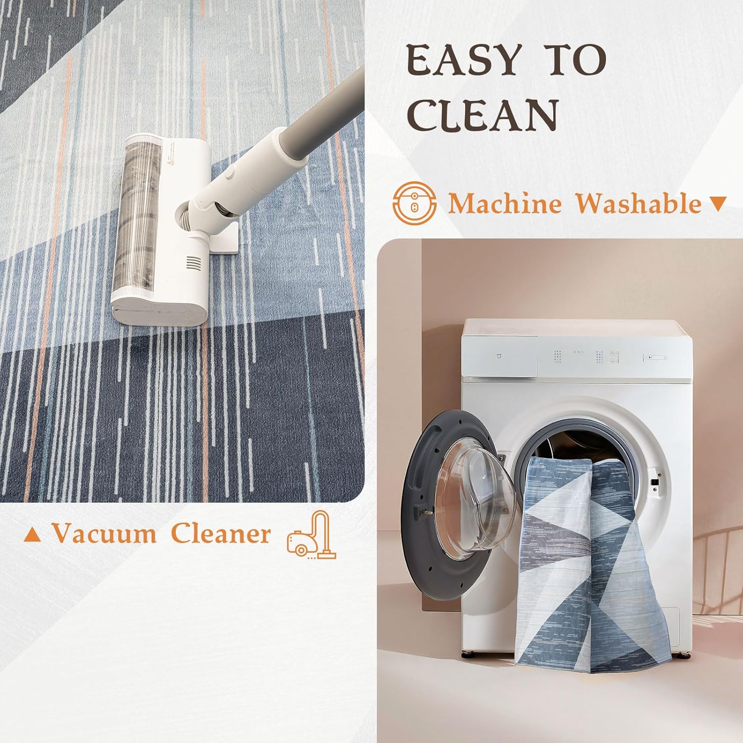 - 【Machine Washable Rugs】HOMFINE modern bedroom rug is machine washable, making it a more thorough and effortless way to remove stains and dust, which not only removes stains, dust, and odors more thoroughly but also saves you time and effort. Daily care is a breeze too, simply use a hoover. The HOMFINE washable area rug offers convenience and affordability for your busy lifestyle