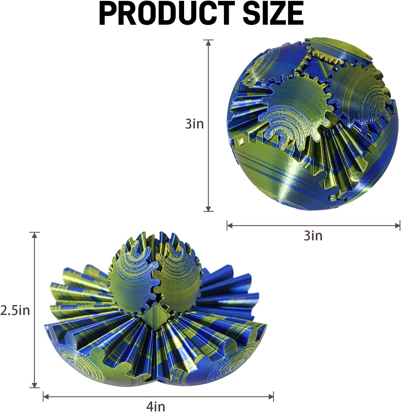 - 【3D Printed Gear Ball】: The 3d printed gear ball features a complex array of interlocking gears that turn, twist, and articulate with a simple flick of your fingers. It's suitable for people of all ages,It’s like holding a mini engineering marvel in your hand!