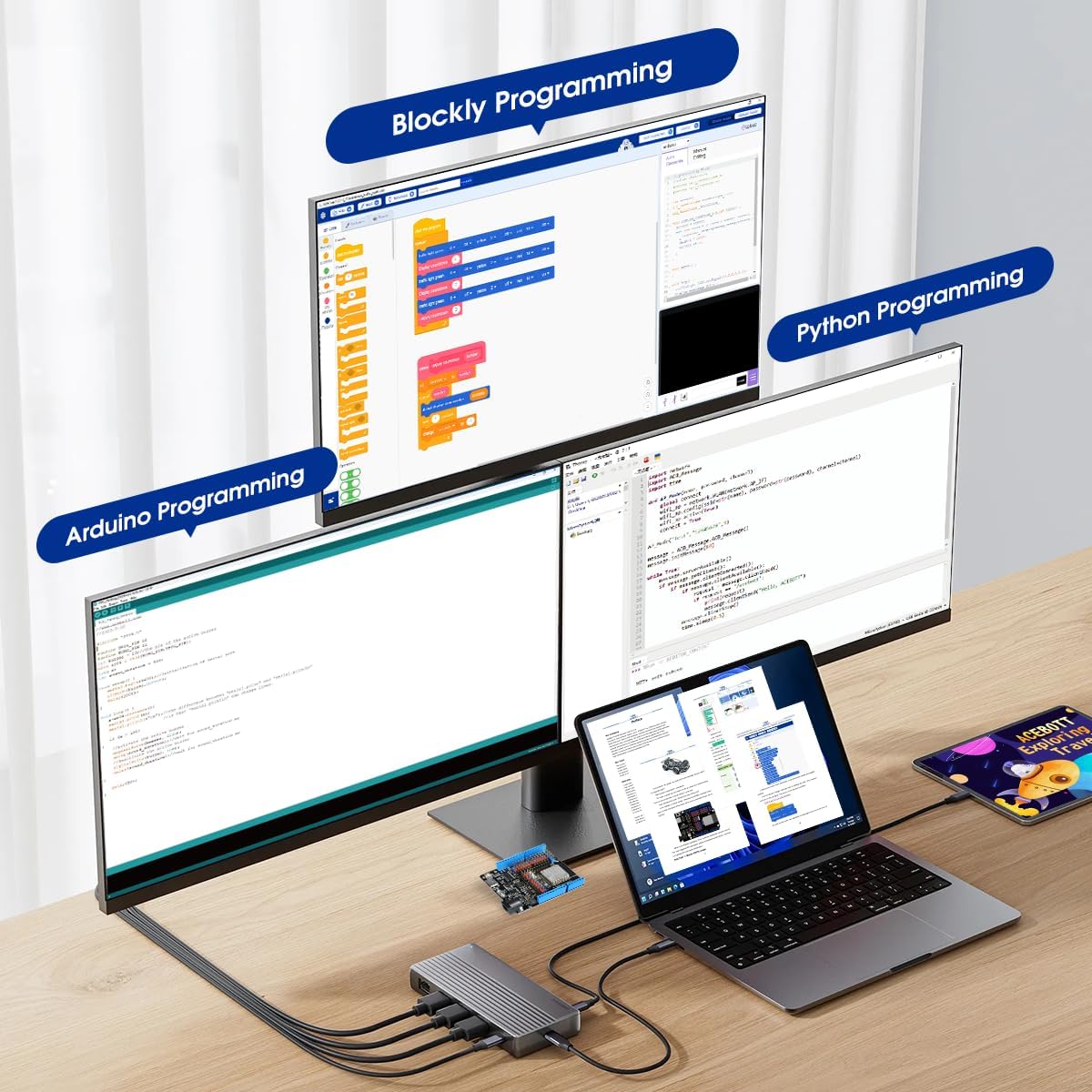- STEM Education Kit: The ACEBOTT coding robot kits provides an excellent platform for STEM education with its easy-to-program ESP32 controller, rich functional expansion and all-round control design, helping students master programming, electronic hardware principles and robotics technology through practical operating systems, and stimulate creativity and problem-solving skills. It is the prefect Christmas gift for programming enthusiasts and teenagers.