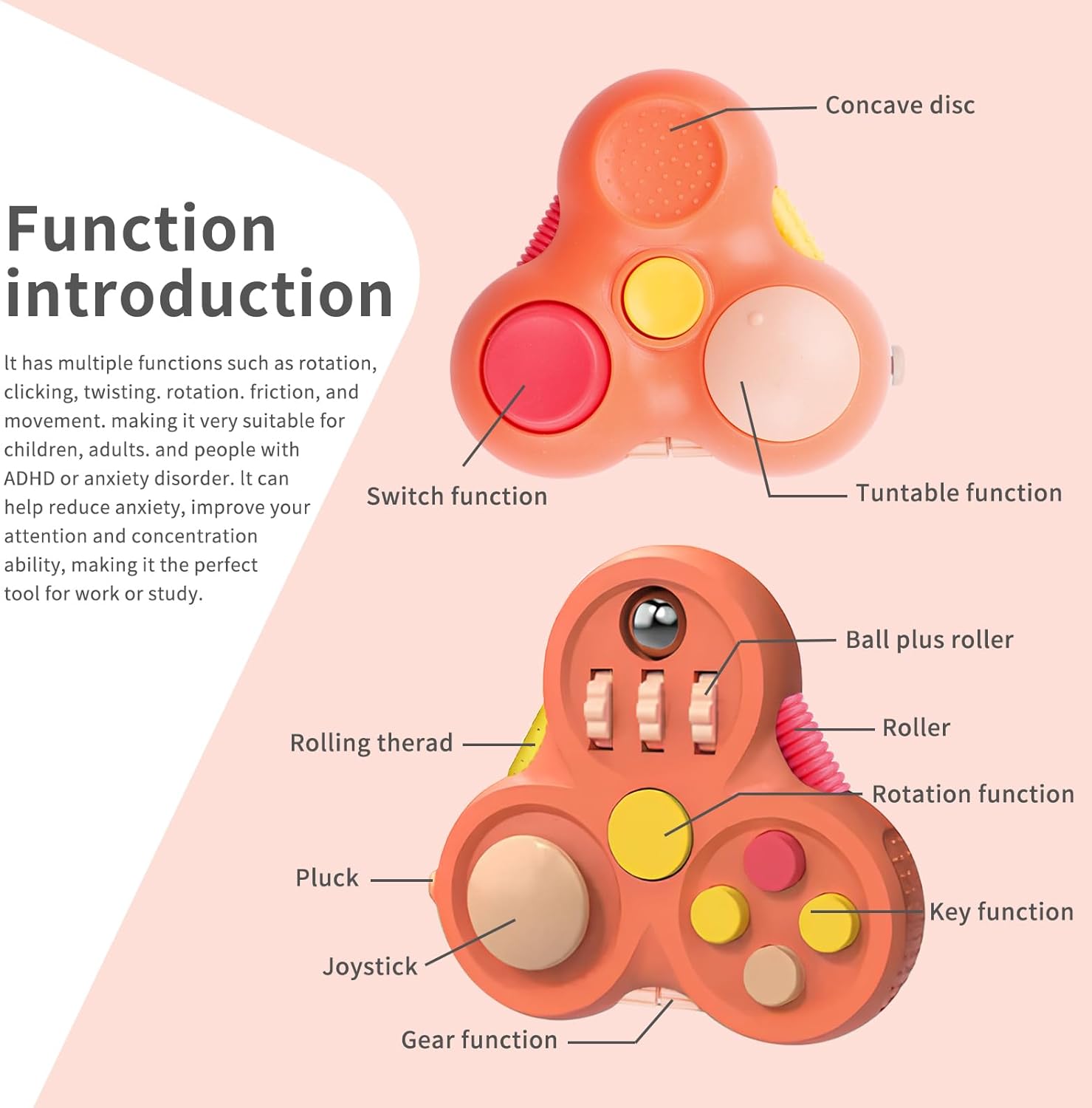 Fidget Toys Adults,Fidget Pad Fidgets,Autism Figette Cubes,Cool Fidget Clicker Controller Desk Toys,Anxiety Relief Stress ADHD Toys,Sensory Fidget Cubes Gifts for Kids Teens Boys(Orange)