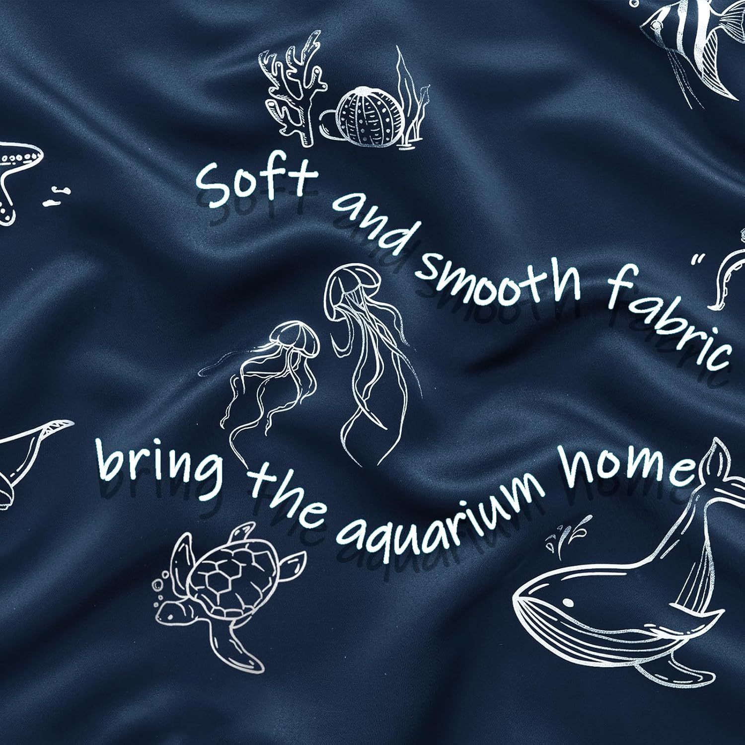 Vangao Kids Curtains for Boys Bedroom Kids Blackout Curtains 84 Inch Length Ocean Aquarium Nursery Drapes for Girls Bedroom Silver Sea Animals Print Thermal Insulated Drapes, Navy Blue 2 Panels