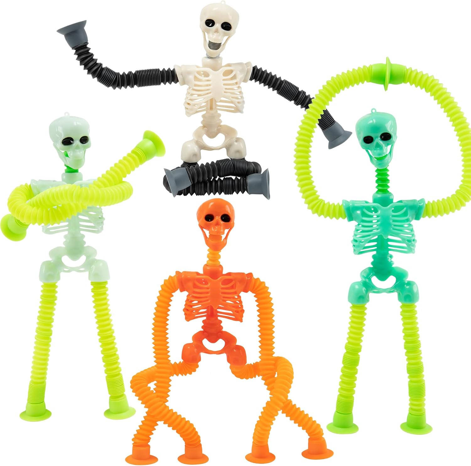 4PCS Telescopic Suction Cup Skeleton Toys, Shape Changing Telescopic Pop Tube Halloween Skeleton Fidget Toys, Skeleton Action Figure for Halloween Party Favors Kids Toddler Gift
