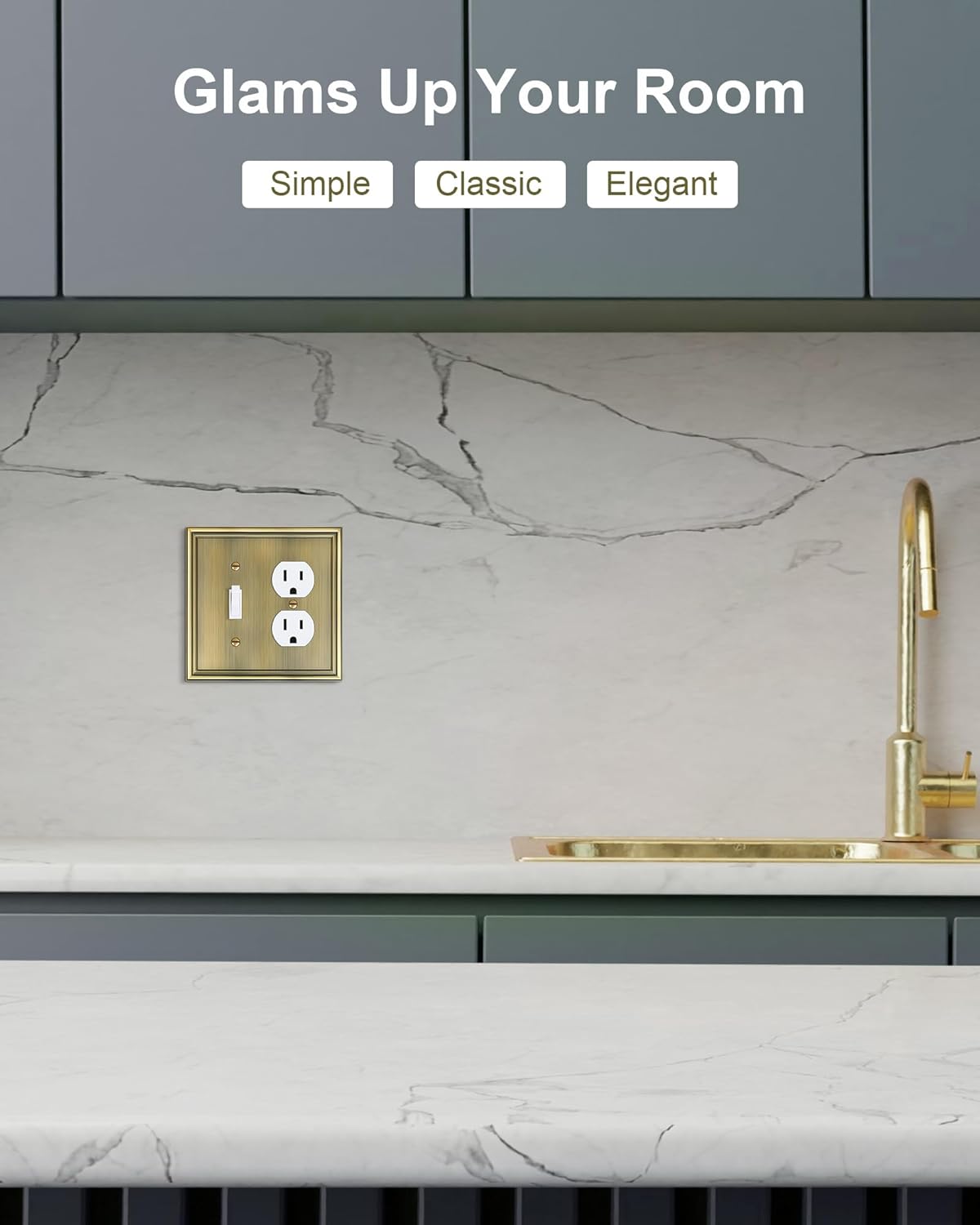 - Wide Application - Versatile and easy to match, These brass wall plates are compatible with Light Switch, Duplex Outlet. Complements any interior style, whether your decor is modern, traditional, or contemporary, this decorative switch plate cover seamlessly blends in and glams up your wall.