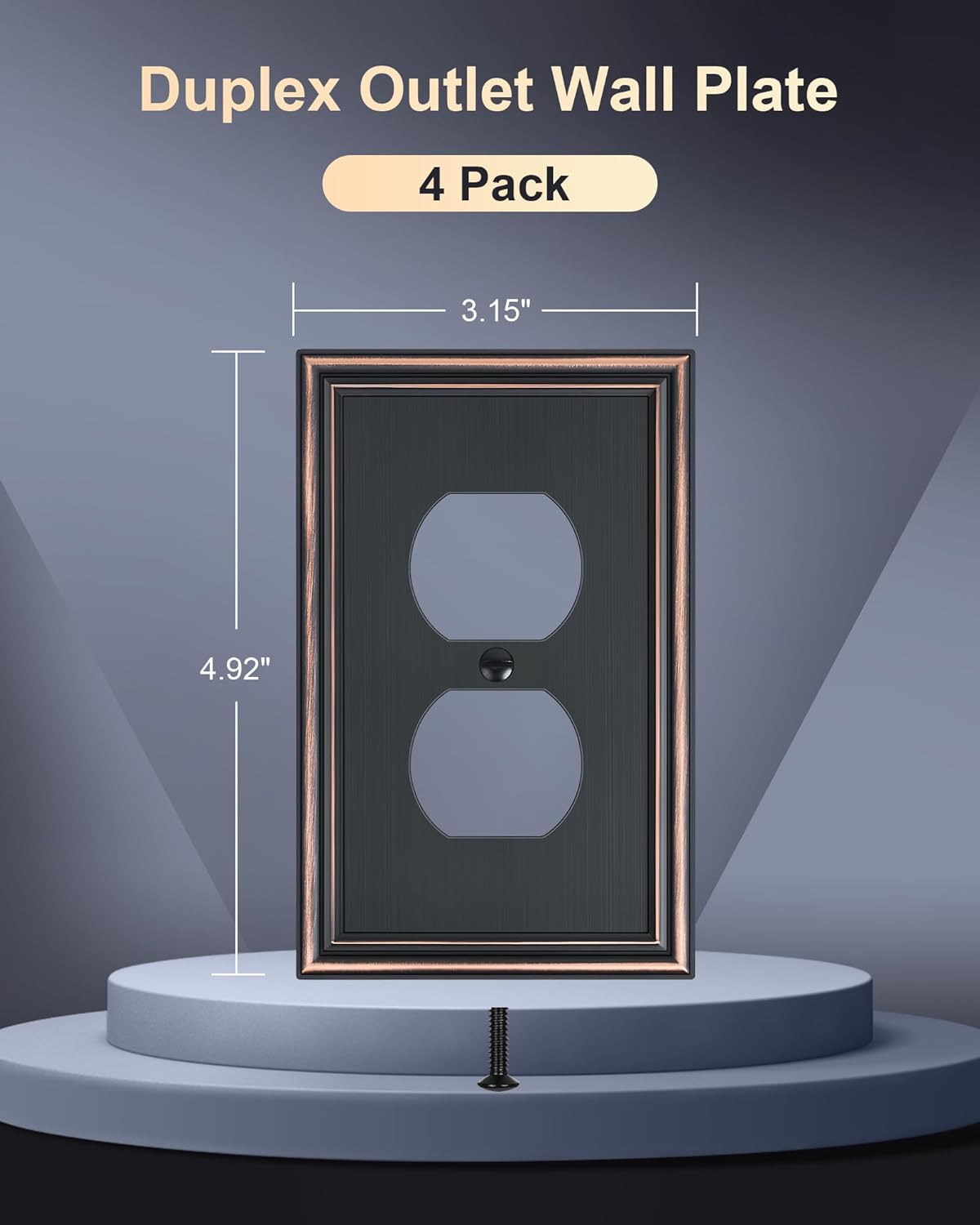 4-Pack Single Duplex Outlet Cover Plate, Decorative Aged Bronze Switch Plates and Outlet Covers, Metal Wall Plates for Electrical Outlets, 1 Gang Receptacle Cover, Corrosion Resistant