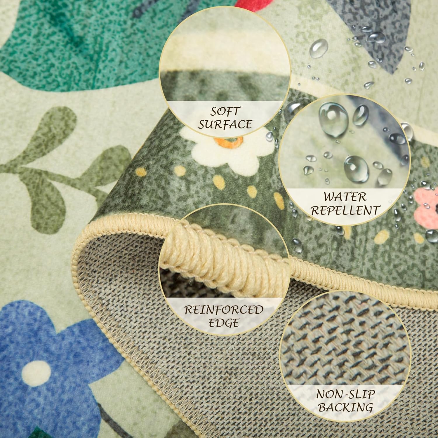 Floral 8x10 Area Rug Machine Washable Soft Print Boho Carpet Non Slip Doormat Low Pile Flower Area Rugs for Living Room Bedroom Nursery Kitchen Dining Room Indoor-Light Green