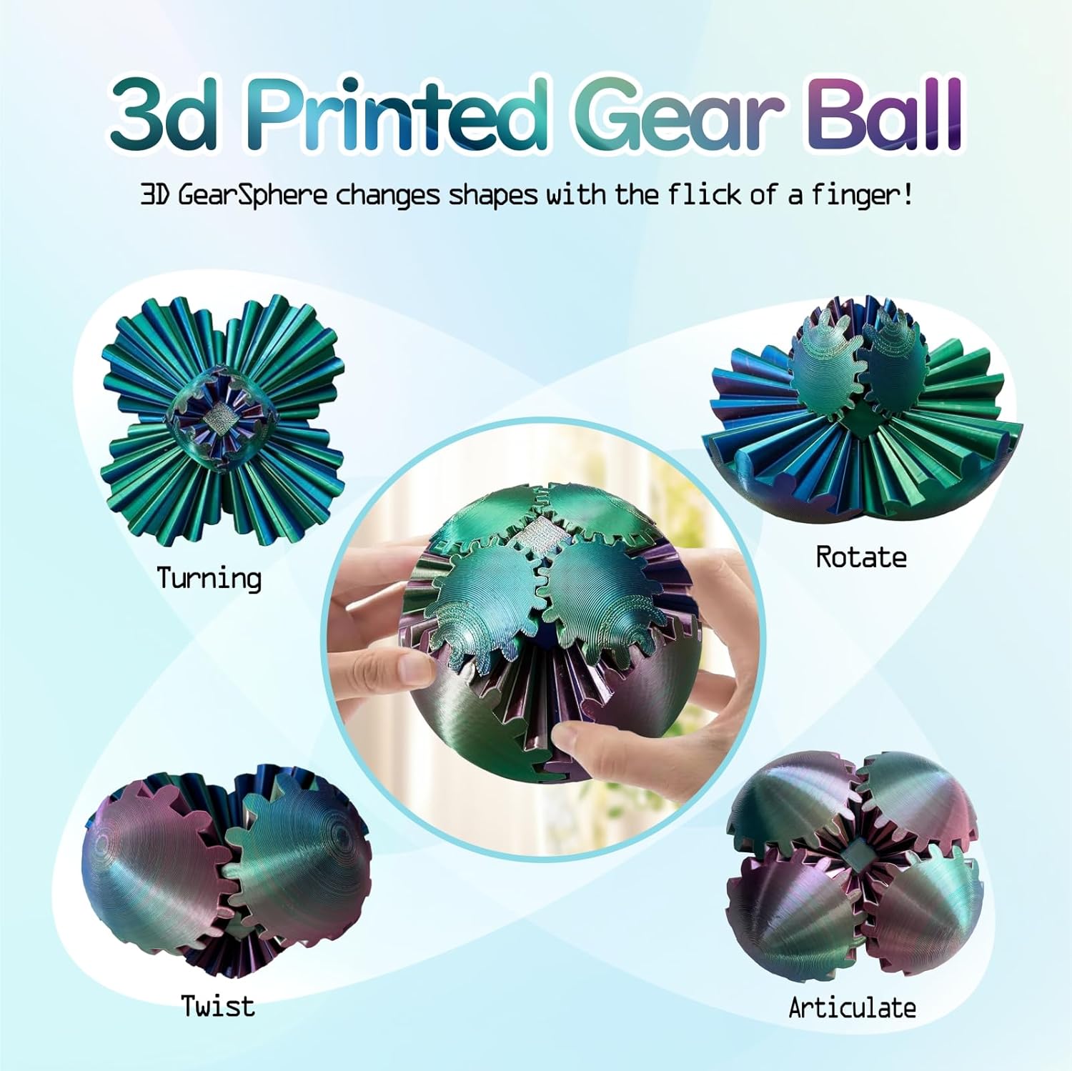 - 【Dynamic Rotation and Shape Change】This 3D printed gear ball consists of interlocking gears. The gear ball can not only rotate 360 degrees, but also display various shapes as you operate it. Whether it is touched, rotated or flipped, it can provide a unique tactile and visual enjoyment.