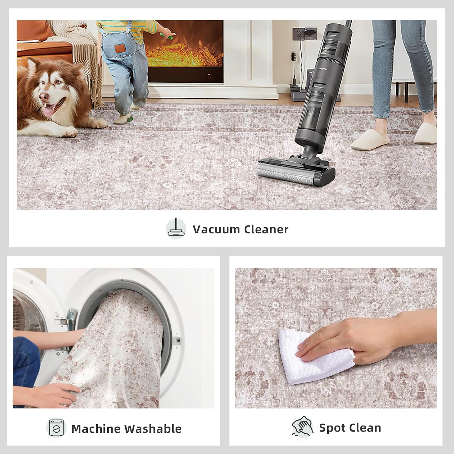 Pink Area Rugs 5x7 Nursery Rug for Baby Girl Neutral Floral Area Rug for Living Room, Vintage Boho Washable Rug Indoor Carpet for Bedroom Dining Room