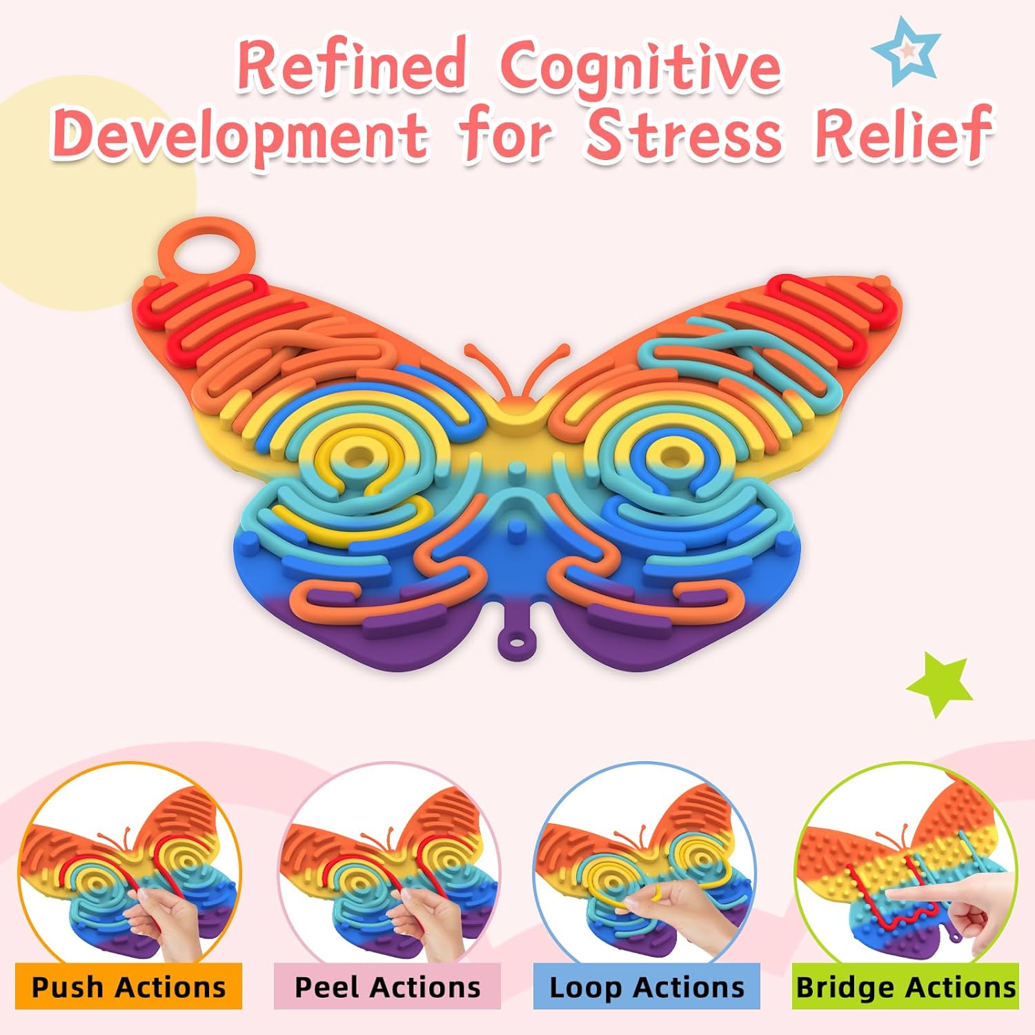 Silicone Sensory Activity Board,2 in 1 Busy Board for Fine Motor Skill, Montessori Fidget Toy for Calming, Stress, Anxiety, ADHD , Autism , Silent, No Mess , Kids 3+ & Adults(Colorful, Butterfly)
