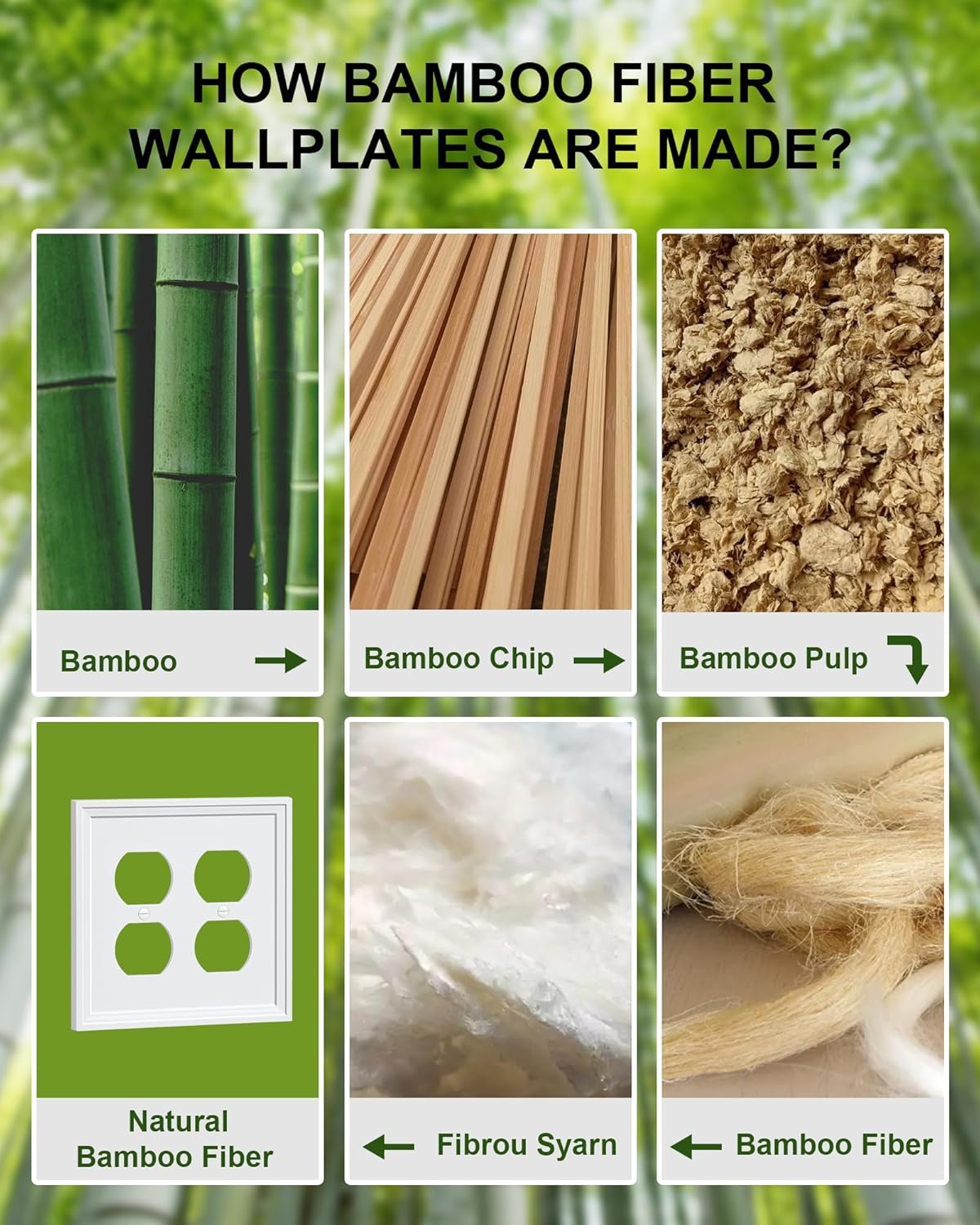 2-Pack Double Duplex Outlet Cover, Natural Bamboo Fiber Switch Plates and Outlet Covers, White Decorative Wall Plates for Electrical Outlets, 2 Gang Receptacle Cover, Corrosion Resistant