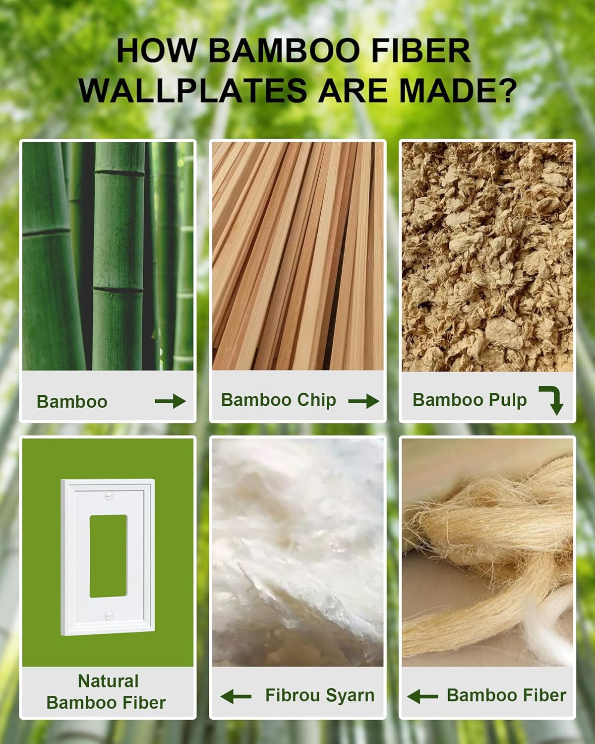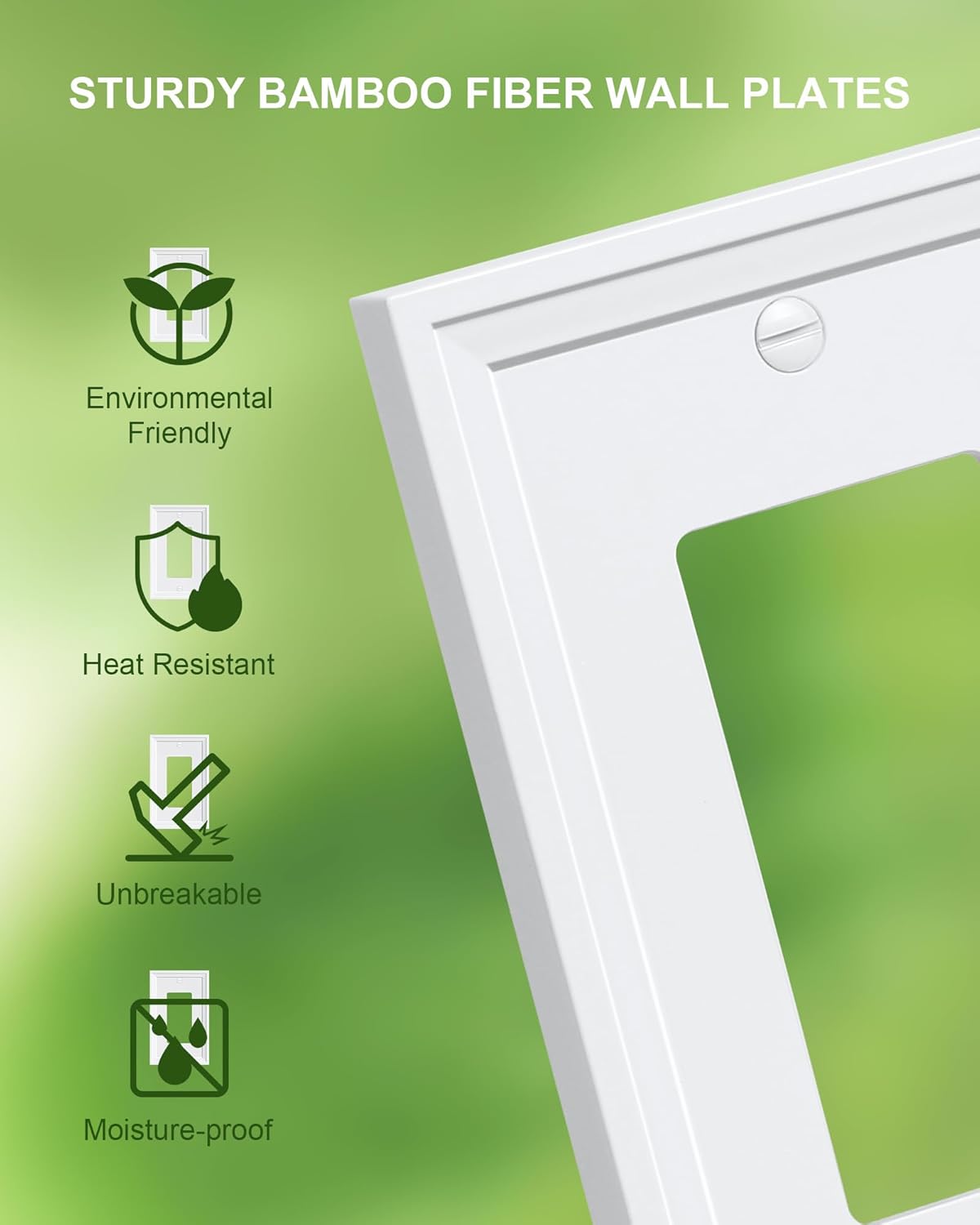 4-Pack Decorator Outlet Cover Plate, White Decorative Switch Plates and Outlet Covers, Natural Bamboo Fiber Wall Plates for Electrical Outlets, Receptacle, GFCI Outlet, Dimmer Switch