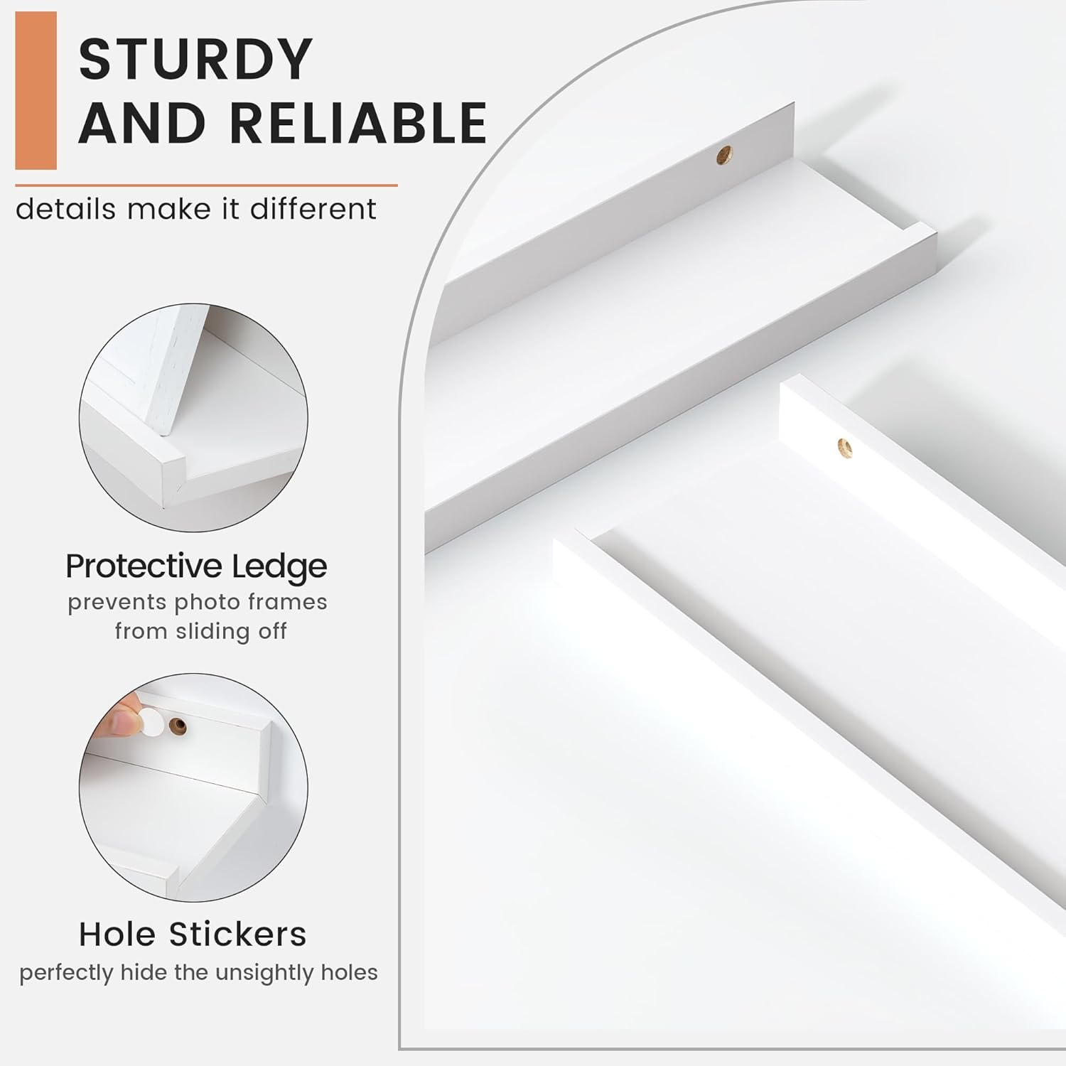 • 【Picture Ledge Perfect for Display】FLYJOE picture ledge shelves for wall turn your walls into a stunning photo gallery! These spacious shelves are ideal for showcasing a variety of picture frames in one secure place. With a thoughtful protective lip, you can display everything from photos to collectibles without worrying about them falling off
