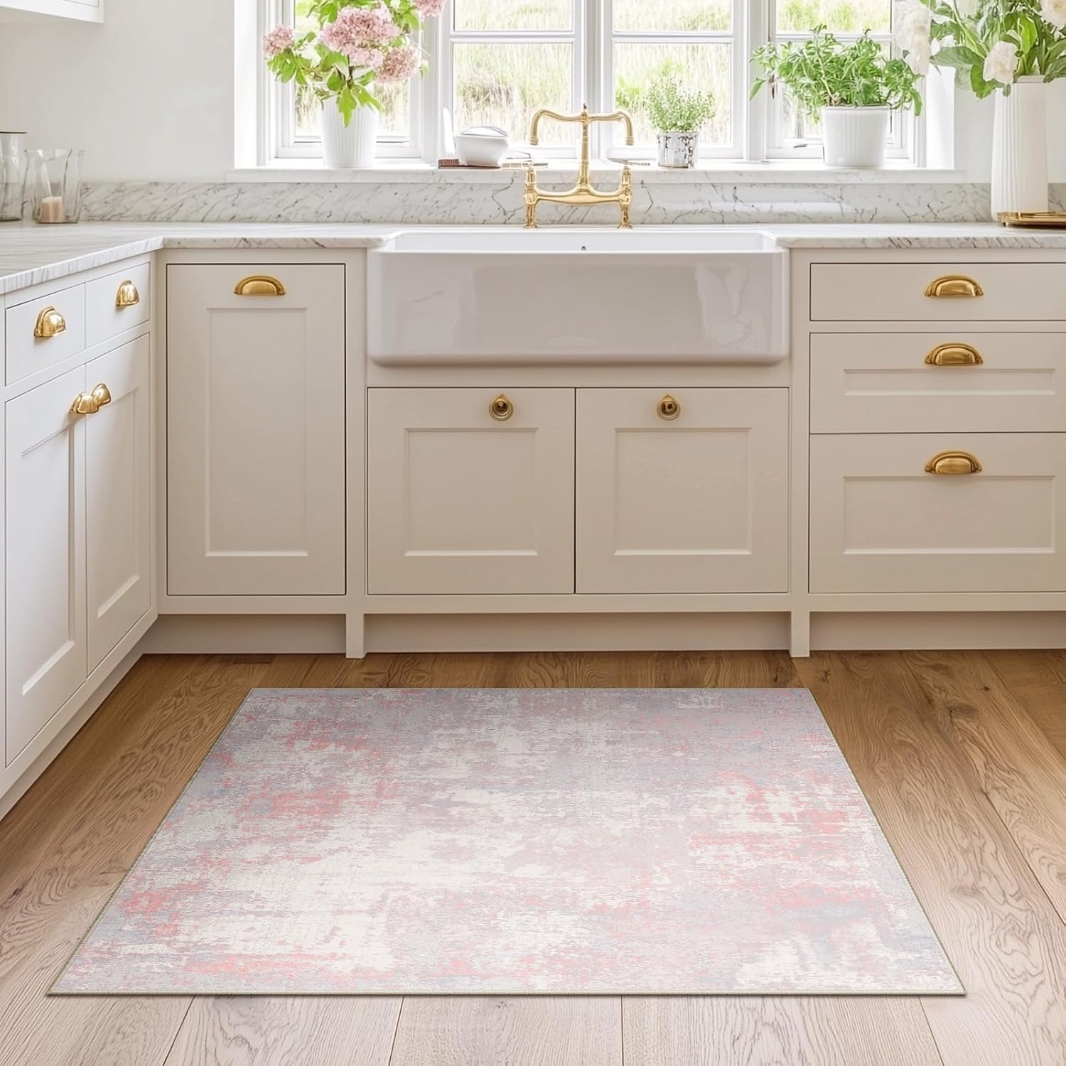 Washable Area Rugs 2'x3' Non-Slip Modern Abstract Soft for Living Room Entryway Bedroom Nursery, Print Pattern, Grey Pink
