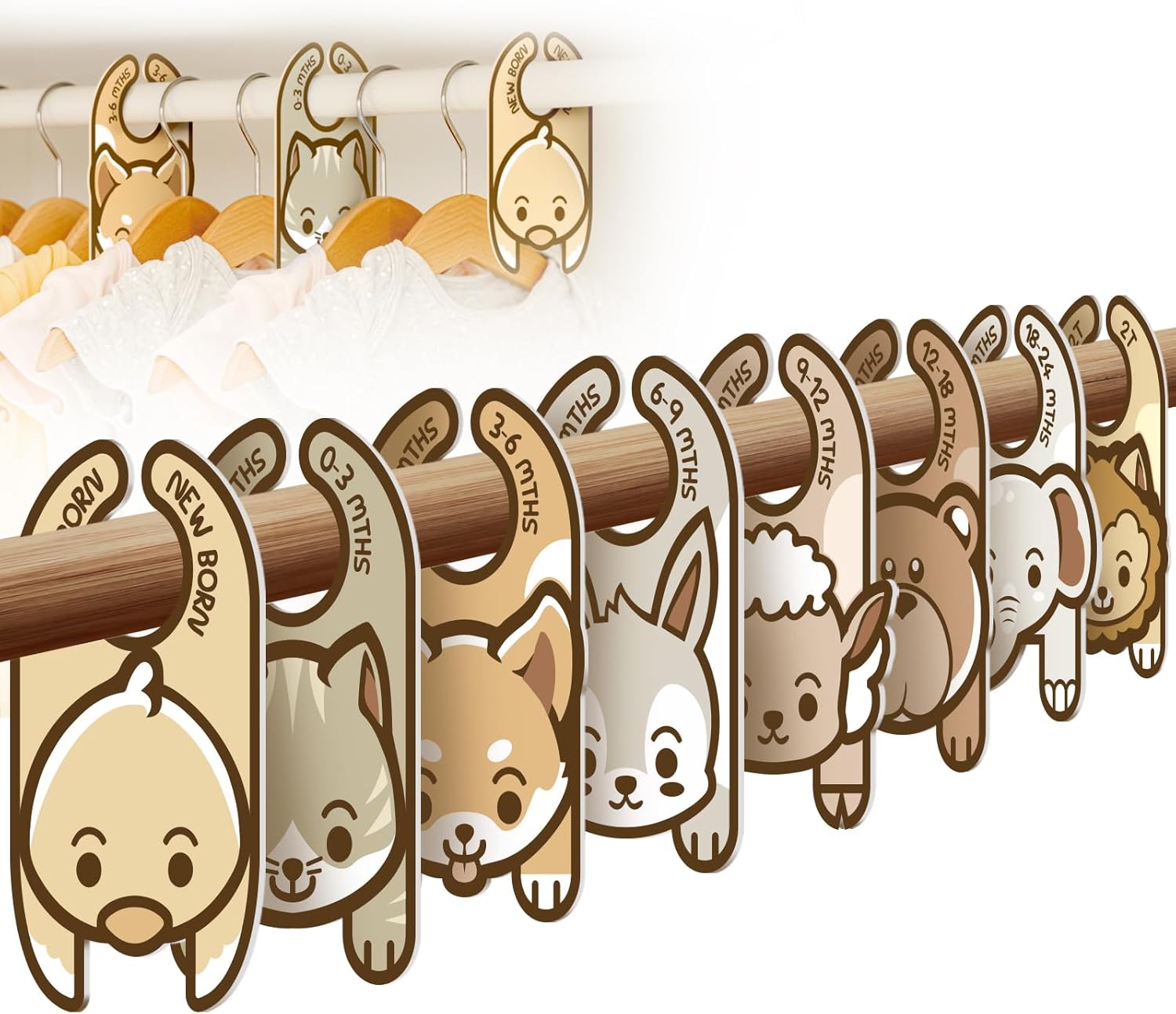 - 【Easily Divide Baby Clothes】 With clear, easy-to-read labels for different sizes and types of clothing, these 8 pack of baby closet dividers make it simple to organize and locate your baby's outfits at a glance. The baby clothes hanger dividers enhanced clarity. Each baby dividers for closet includes dividers for baby age ranges and clothing sizes, from newborn to toddler, ensuring that as your baby grows, their closet still remains neat and orderly.