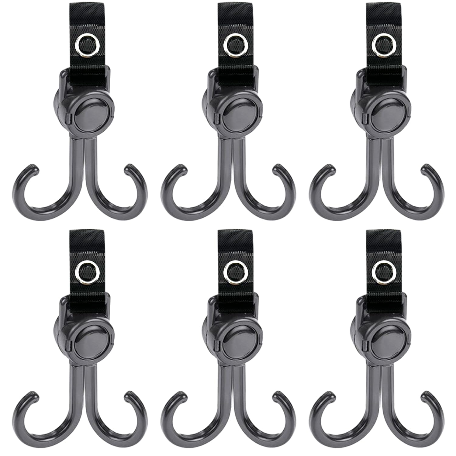 Double Stroller Hooks, 6 Pack Car Seat and Headrest Hook, Adjustable Universal Organizer Hanger for Strollers