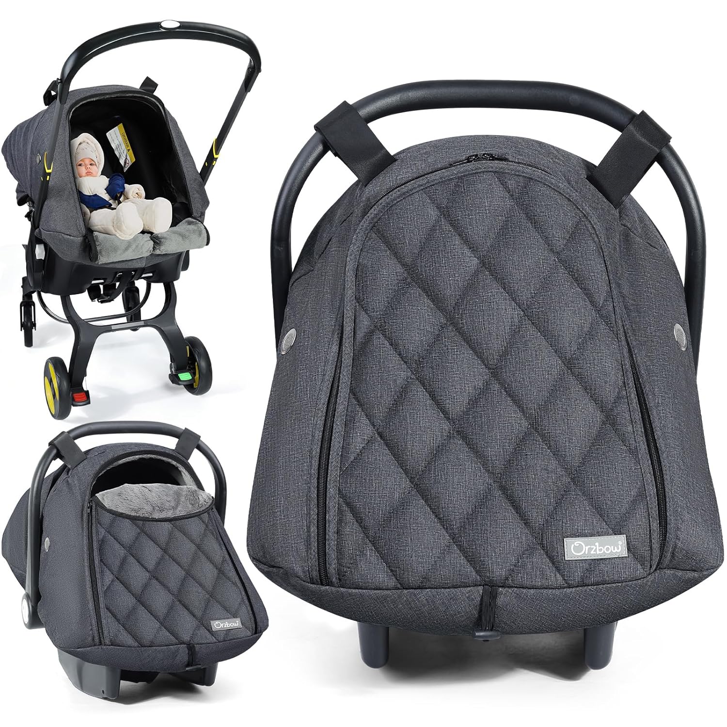 Orzbow Baby Car Seat Cover, Winter Carseat Cover with Zipper Access, Weather & Wind Proof, Side Breathable, Compatible with Doona Car Seats and Strollers, Newborn Essentials Carrier Canopy, Dark Grey