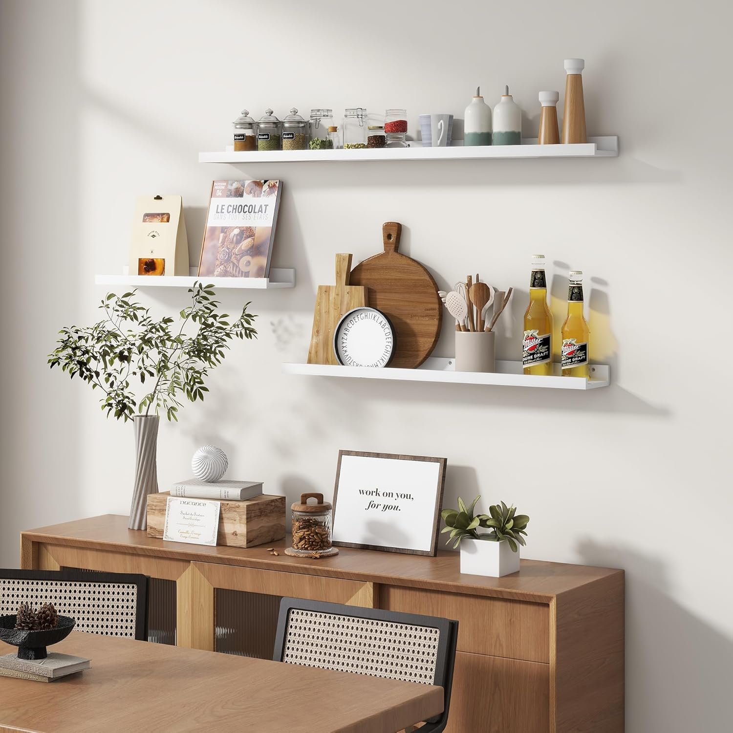 Picture Ledge Shelf for Wall, 56 inches Solid Pine Wood Nursery Book Shelves 3 Packs, Floating Ledge Shelves for Kids' Room Bedroom Bathroom Long Floating Shelves for Wall Nursey Wall Decor, White