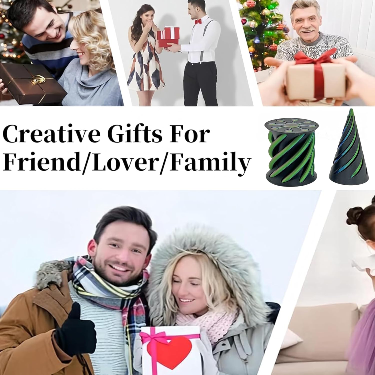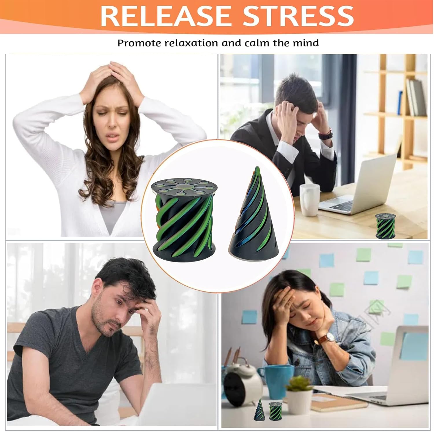Impossible Pyramid Passthrough Sculpture - 2Pcs 3D Printed Spiral Cone Fidget Toy, Stress and Anxiety Relief Toy, Pass Through Pyramid Fidget Toy for Adult Children (Colorful-Green)
