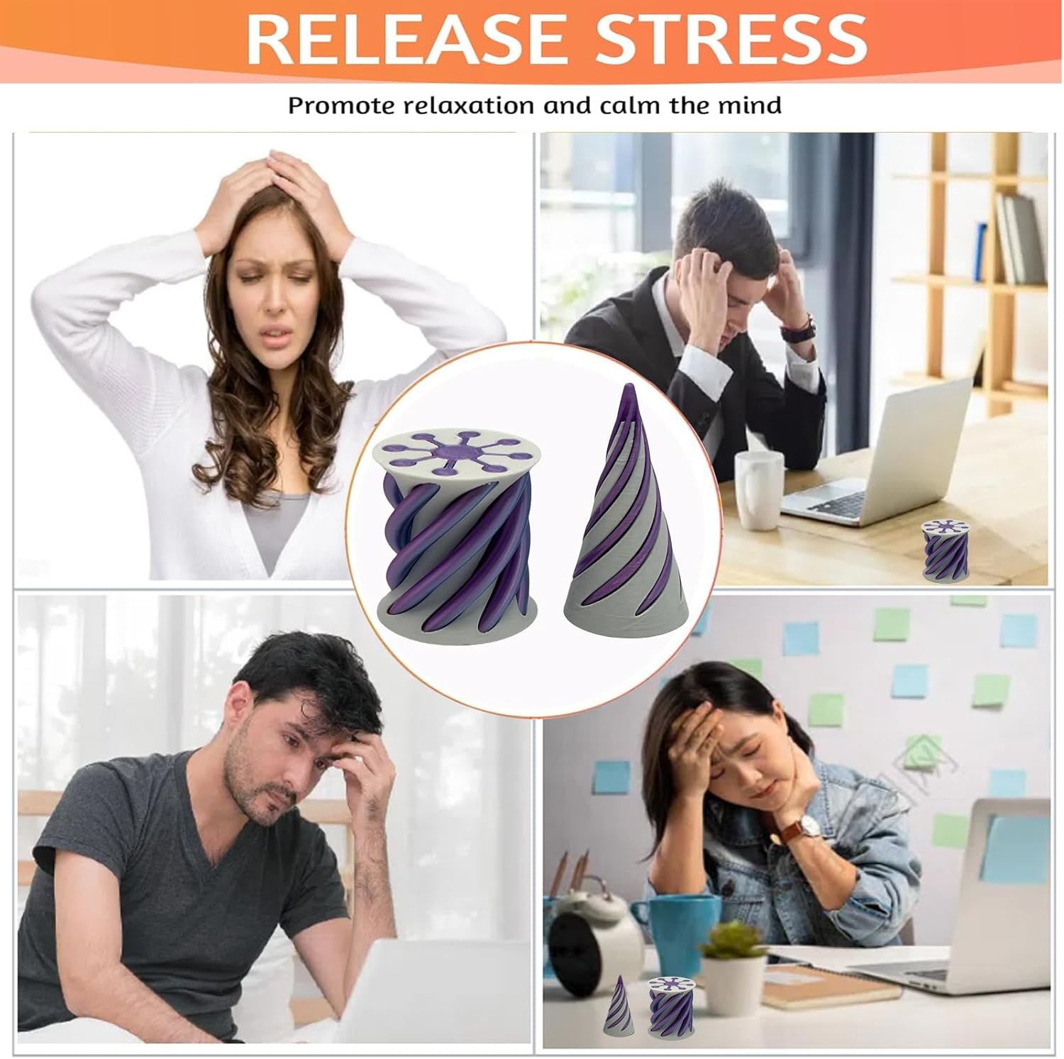 Impossible Pyramid Passthrough Sculpture - 2Pcs 3D Printed Spiral Cone Fidget Toy, Stress and Anxiety Relief Toy, Pass Through Pyramid Fidget Toy for Adult Children (Purple)