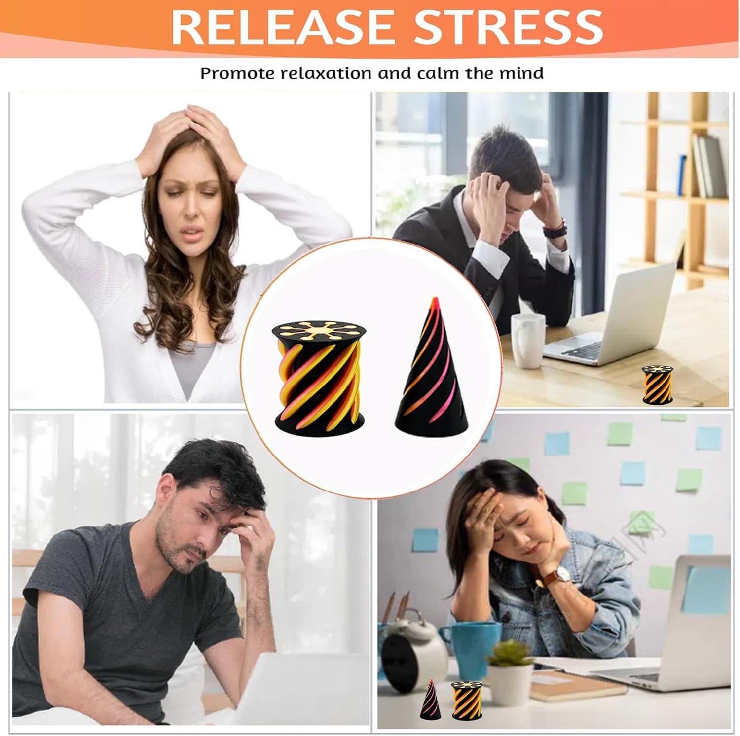 Impossible Pyramid Passthrough Sculpture - 2Pcs 3D Printed Spiral Cone Fidget Toy, Stress and Anxiety Relief Toy, Pass Through Pyramid Fidget Toy for Adult Children (Colorful-Orange)