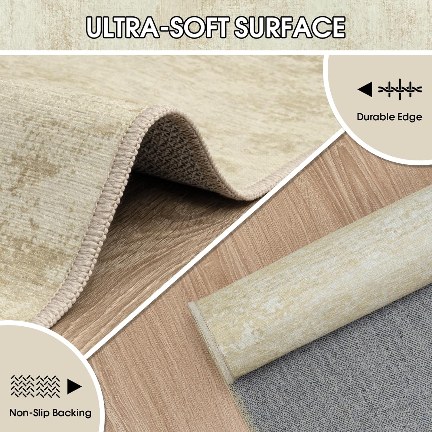Washable Rug 6x9 Area Rugs, Abstract Large Living Room Rugs with Non-Slip Backing, Thin Carpet for Dorm Dining Room Table Nursery Indoor Home Office -Beige