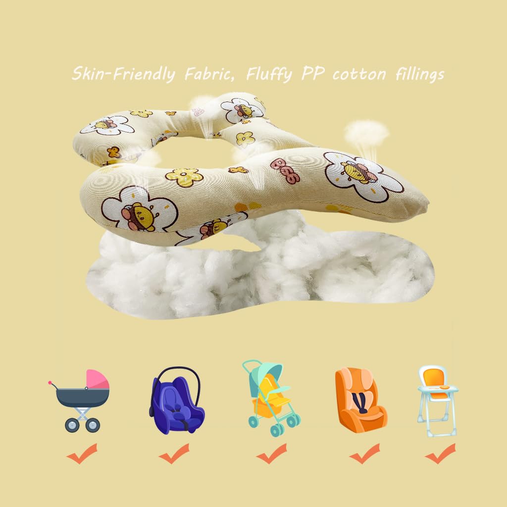 Baby Neck Pillows, Comfortable Baby Travel Head Neck Support Pillow for Car Seat Stroller Pushchair, Soft PP Cotton Travel Pillow for 0-1 Year Old Toddler Infant Newborn, Bee