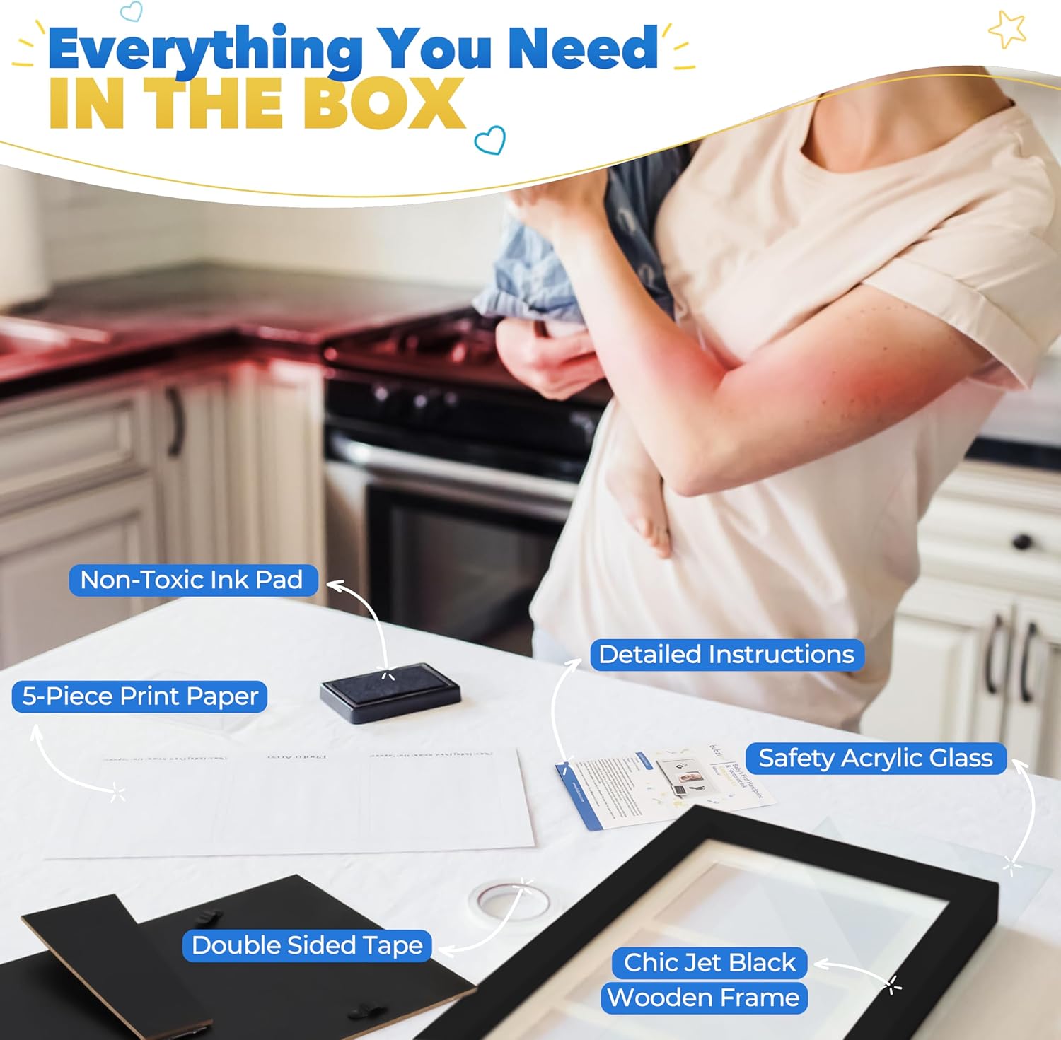 Bubzi Co Baby Handprint Kit & Footprint Photo Frame for Newborn Girls and Boys, Unique Baby Shower Gifts Set for Registry, Memorable Keepsake Decorations for Room Wall or Nursery Decor (Jet Black)