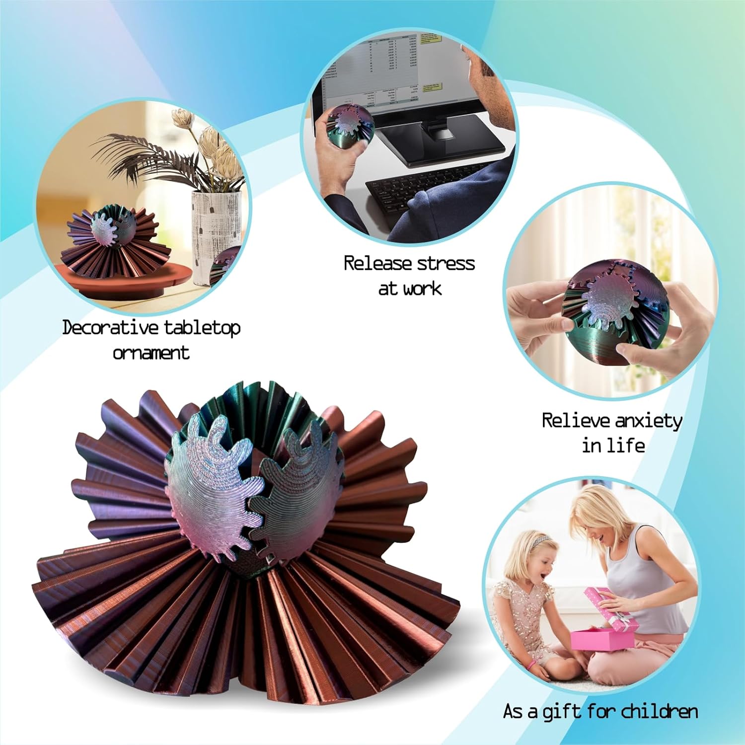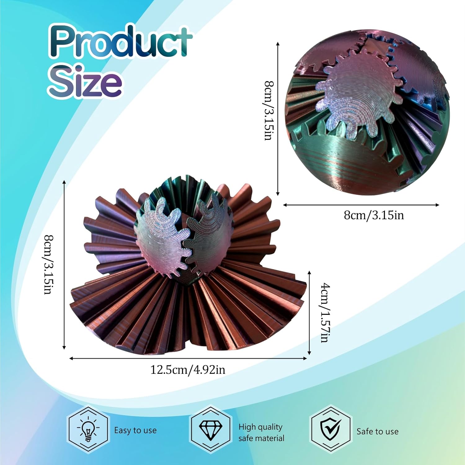 - Fascinating 3D Printed Gear Ball: This 3D printed gear ball spin ball is an innovative finger toy designed to provide stress relief and anxiety relief. The gear ball fidget toy stands out for its unique assembly design, which attracts your hands, mobilizes your mind, and eliminates stress with every satisfying turn