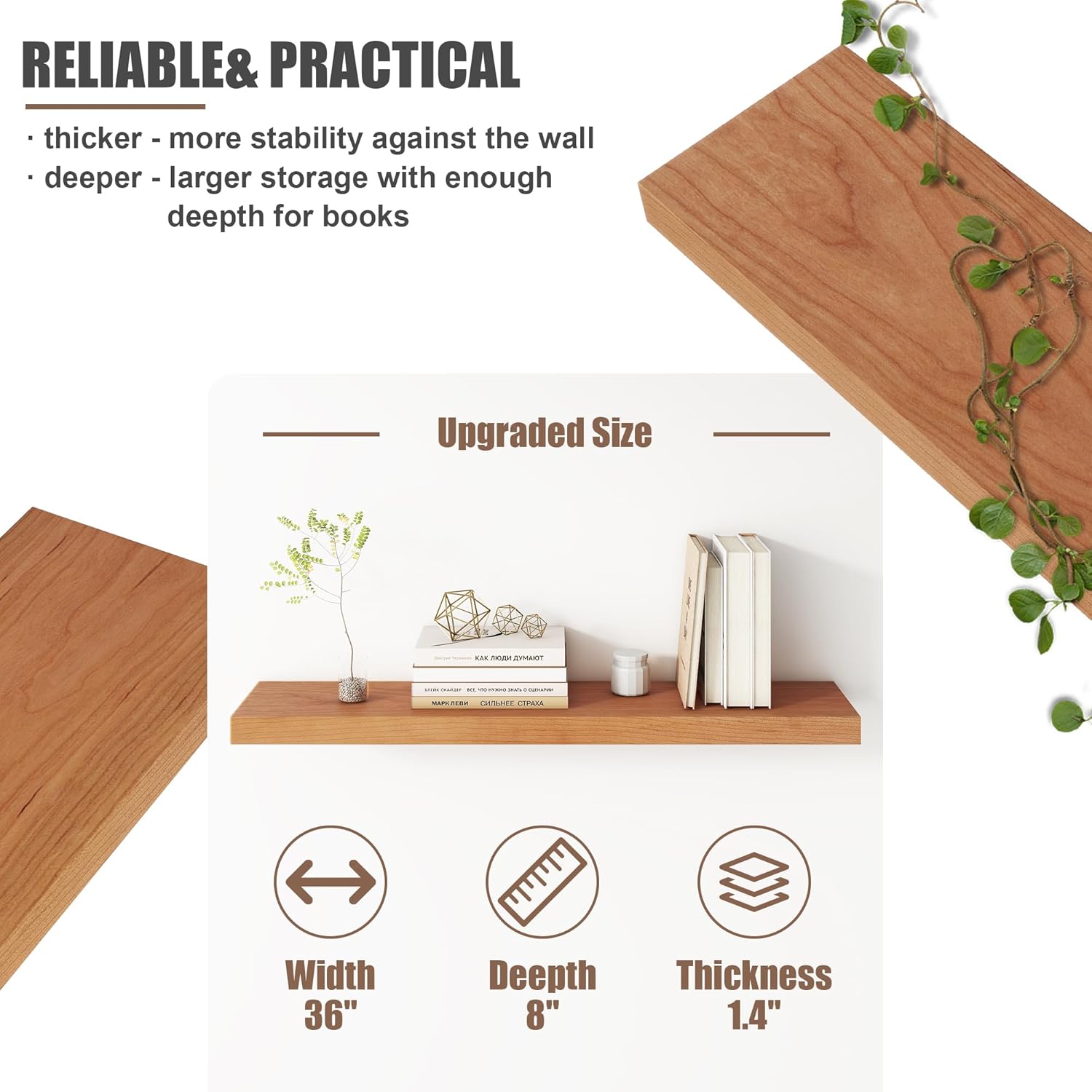 - CRAFTSMANSHIP AT ITS BEST: Our solid cherry hardwood shelves are handcrafted with precision, making them the perfect fit for a modern, contemporary, rustic, or Scandinavian interior. The stunning wood grain adds warmth and charm, making it an heirloom piece that will last for years.