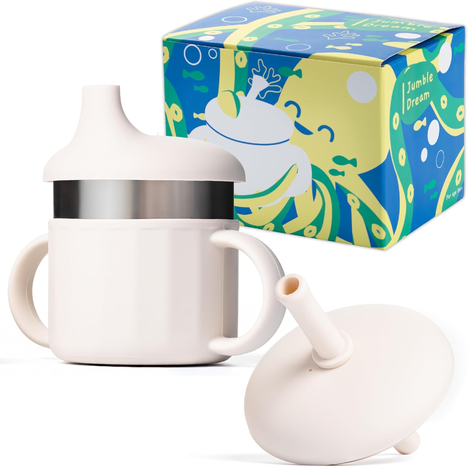 Jumble Dream Baby Sippy Cup, 100% Silicon Training Stainless Steel Kids Cups with Silicon Straw, Toddler Tumbler with Straw Spill Proof |6 Month Plus Toddler Sippy Cup| BPA Free Baby Beaker