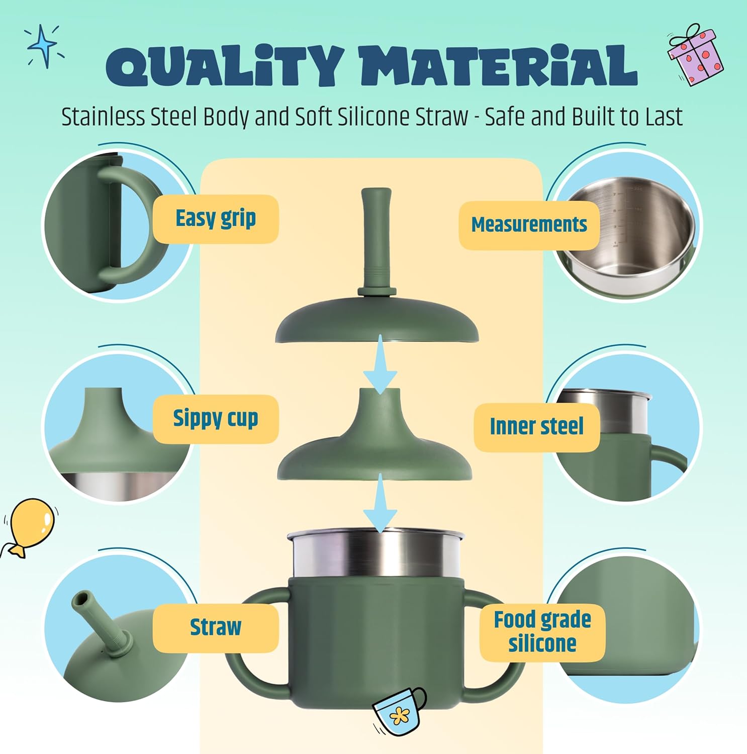 - Keeps Drinks Cool and Fresh – The stainless steel straw cups keep drinks cooler for longer, unlike plastic. Ideal as a kids cup or toddler stainless steel cup for 2 years old, it ensures refreshing, fresh-tasting drinks every time, perfect for 1 year olds!