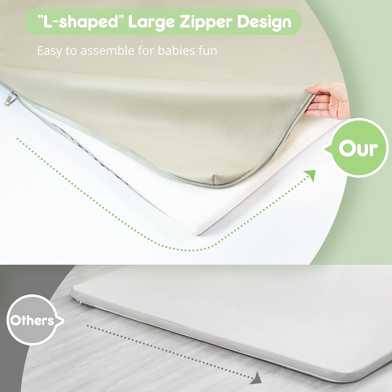 - Durable Premium Design:The cover of the baby mat is made from super soft non-toxic PU leather, giving you peace of mind about safety. And the surface is waterproof and easy to clean, which is a huge bonus when dealing with the messes babies make