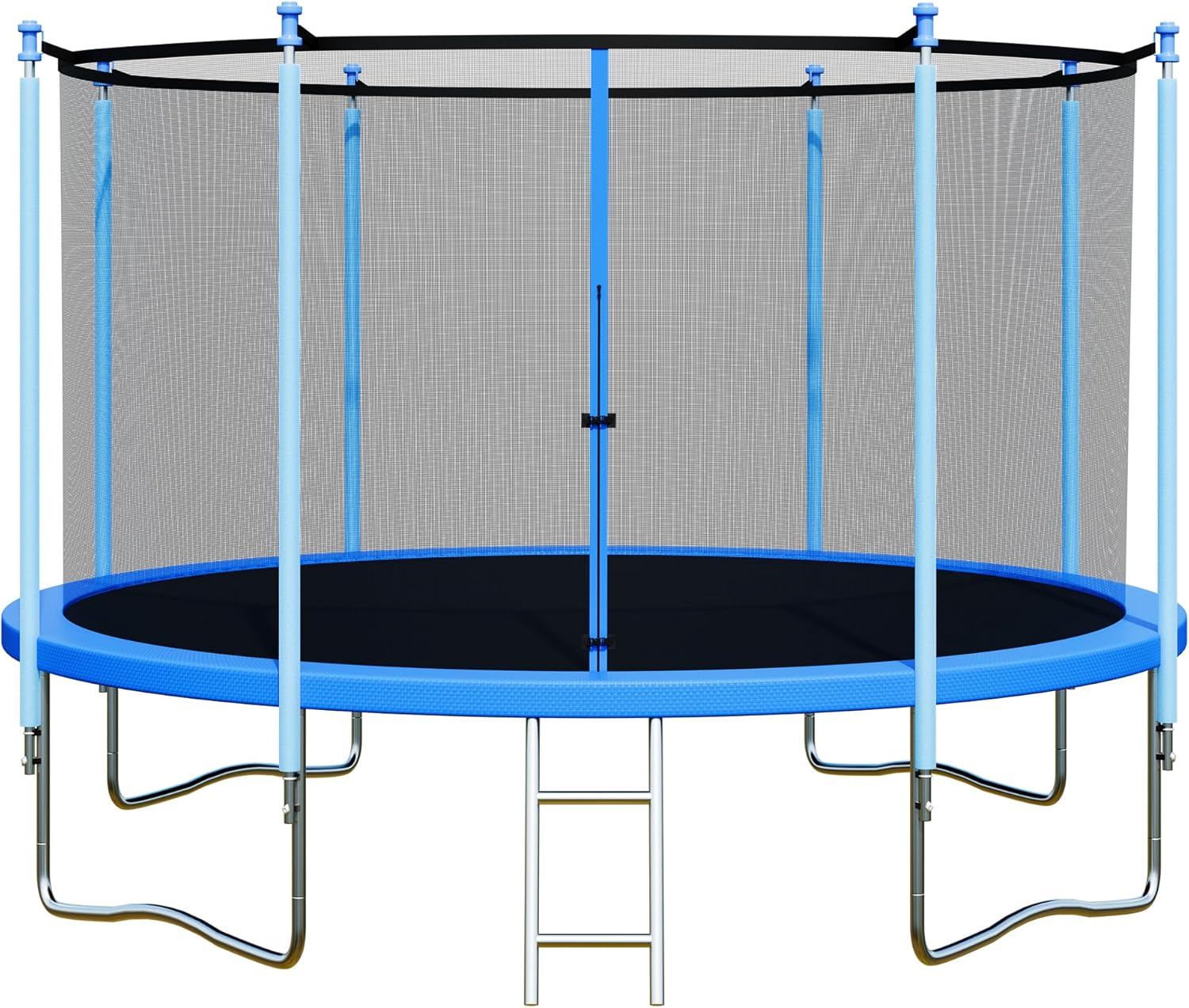 Trampoline with Enclosure - 12FT & 14FT Recreational Trampolines, Ladder, AntiRust Coating, ASTM Approved