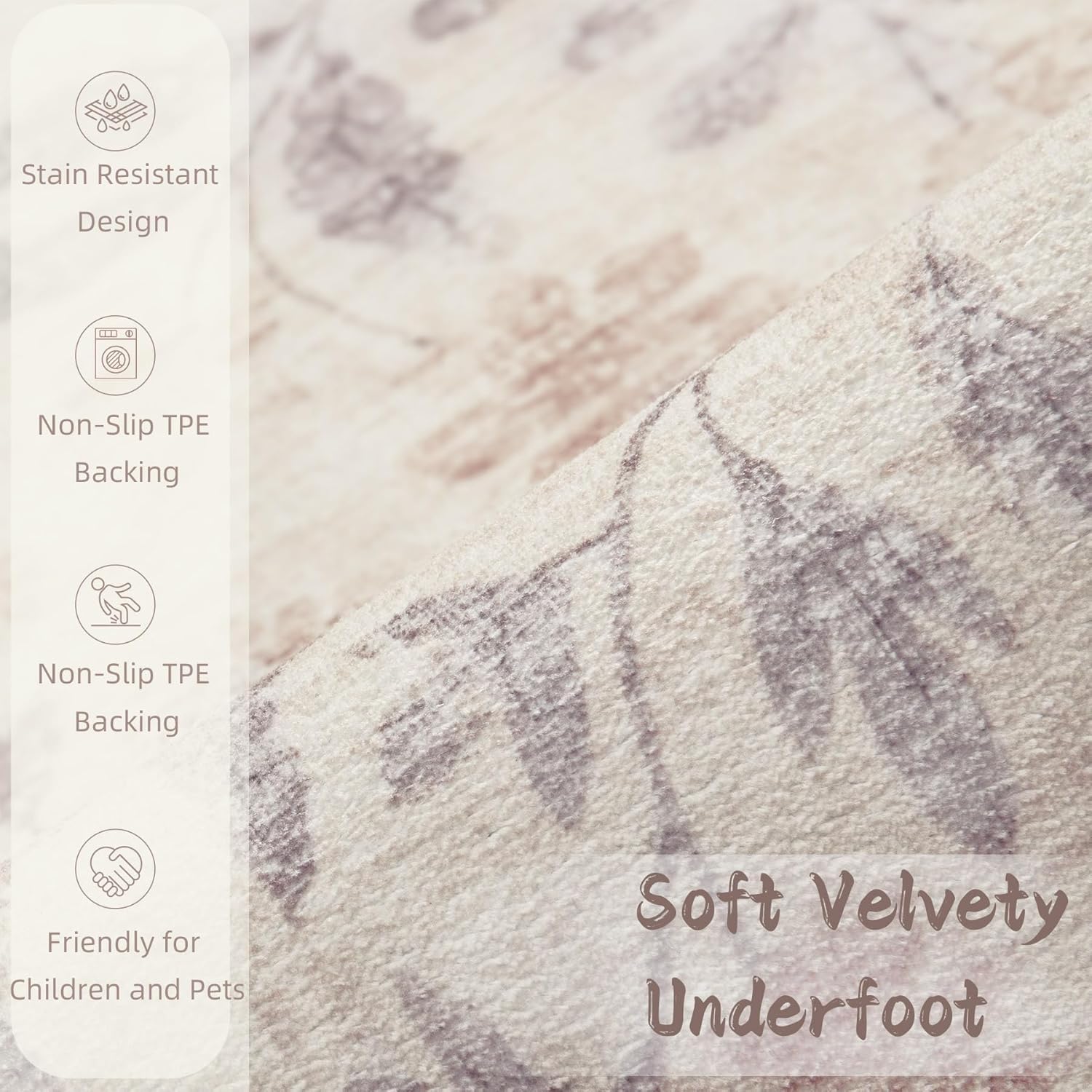 Rugs for Living Room 4x6 Rug, Washable Floral Boho Area Rug Non Slip Soft Low Pile Small Carpet for Bedroom Girls, Bedside, Kitchen, Entryway, Kids Room, Office, College Dorm(4'x6', Floral Beige)
