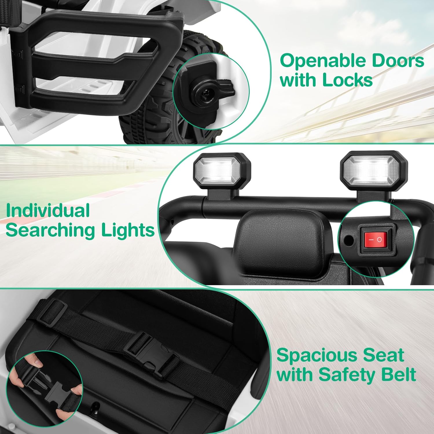 - 【Safe & Reliable Construction】 Constructed from BPA-free material, the electric ride on truck is equipped with adjustable safety belt, lockable doors to ensure durability and safety. It complies with ASTM and CPSIA standards, serving as a reliable and perfect gift for boys and girls over 3 years old.