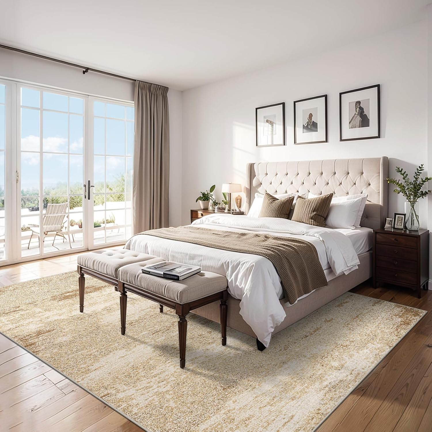 Area Rugs 9x12 Living Room - Washable Rug Modern Abstract Soft Large Neutral Non-Slip Carpet Indoor Floor Stain Resistant Thin Carpets for Bedroom Dining Room Farmhouse Nursery Home Office Beige
