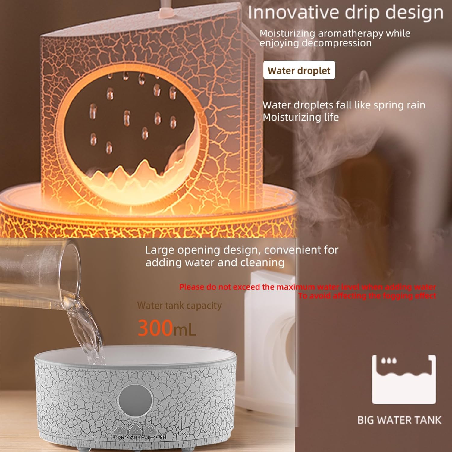 - Humidifier and Aromatherapy Diffuser: The latest raindrop humidifier can be used as an air humidifier and essential oil diffuser. The room humidifier uses high-frequency ultrasonic vertical atomization to send dispersed and diffused water mist to high places. Moisturizing Spray The fine texture can improve air quality, relieve study and work stress, and soothe your mood. Helps improve breathing and sleep, and reduce skin dehydration caused by dry weather.