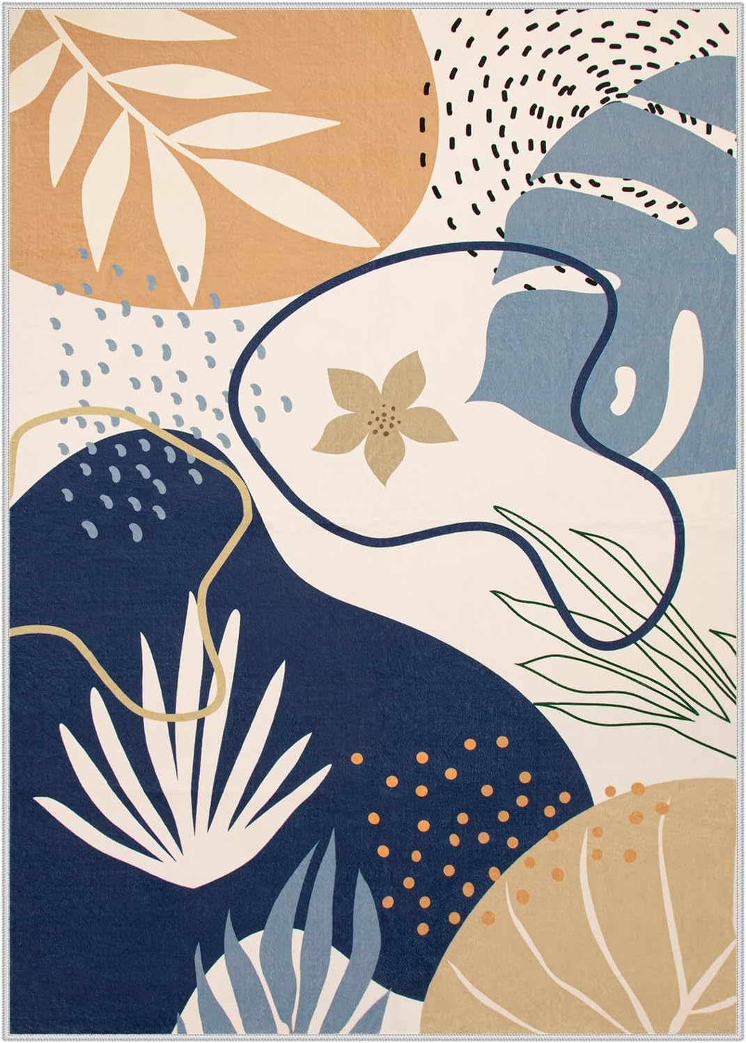 Lahome Rug for Living Room - 5x7 Area Rug Washable Non-Slip Bedroom Carpet Ultra-Thin Throw Cute Soft Kids Nursery Rug, Boho Botanical Print Stain Resistant Indoor Rugs for Dorm Entryway Office