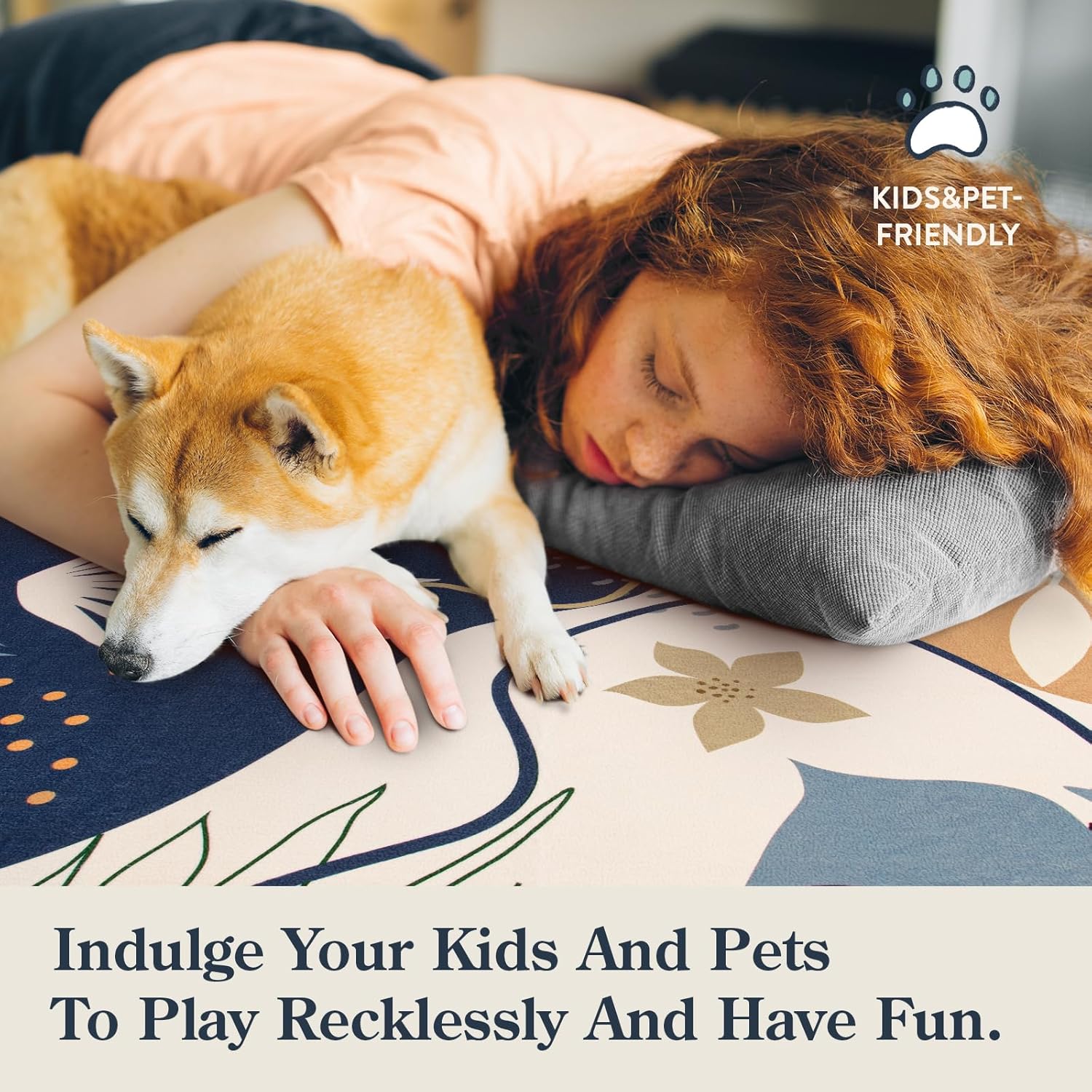 Lahome 4 x 6 Area Rug Living Room Carpet - Washable Soft Rugs for Bedroom Non-Slip Ultra-Thin Floor Rug for Office, Boho Botanical Print Stain Resistant Indoor Rugs for Kitchen Entryway Laundry Room