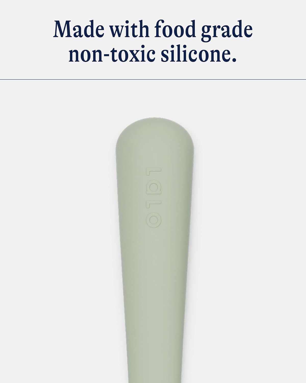 Lalo Utensils - Toddler Fork and Spoon Set - Stainless Steel and Silicone Ergonomic Toddler Utensils - Children Safe Flatware Set - 2 Pieces - Sage