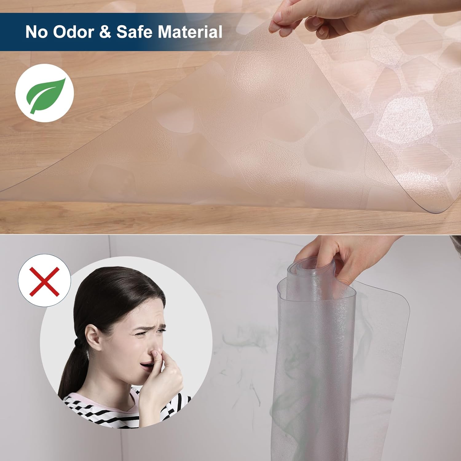 - Unique Pebble Pattern for Added Texture: This clear waterproof area mat features a distinctive irregular pebble block design, adding a natural yet modern touch to any space. Perfect for living rooms, dining rooms, or offices, it enhances your floor with artistic flair while protecting it from scratches and wear