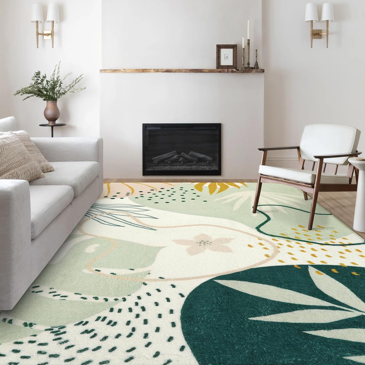 Lahome Green 10x14 Rug for Living Room, Large Washable Area Rug Non-Slip Ultra-Thin Stain Resistant Rug for Dining Room Table, Soft Botanical Print Indoor Rug for Bedroom Office (Green, 10'x14')