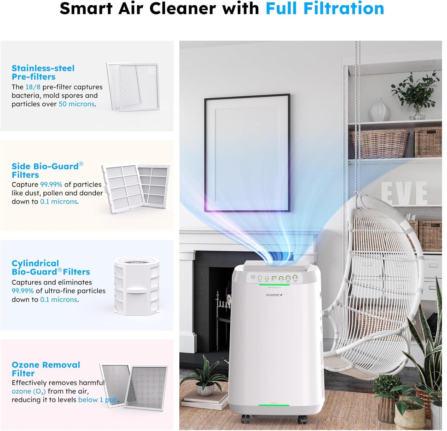 Nuwave OxyPure ZERO Air Purifier for Home Large Rooms Up to 2,002 Sq Ft 100% Particle Removal to 0.1 Micron, Dual 4-Stage Filtration, Adjustable Airflow, Smart Air Cleaner Washable & Reusable Filter