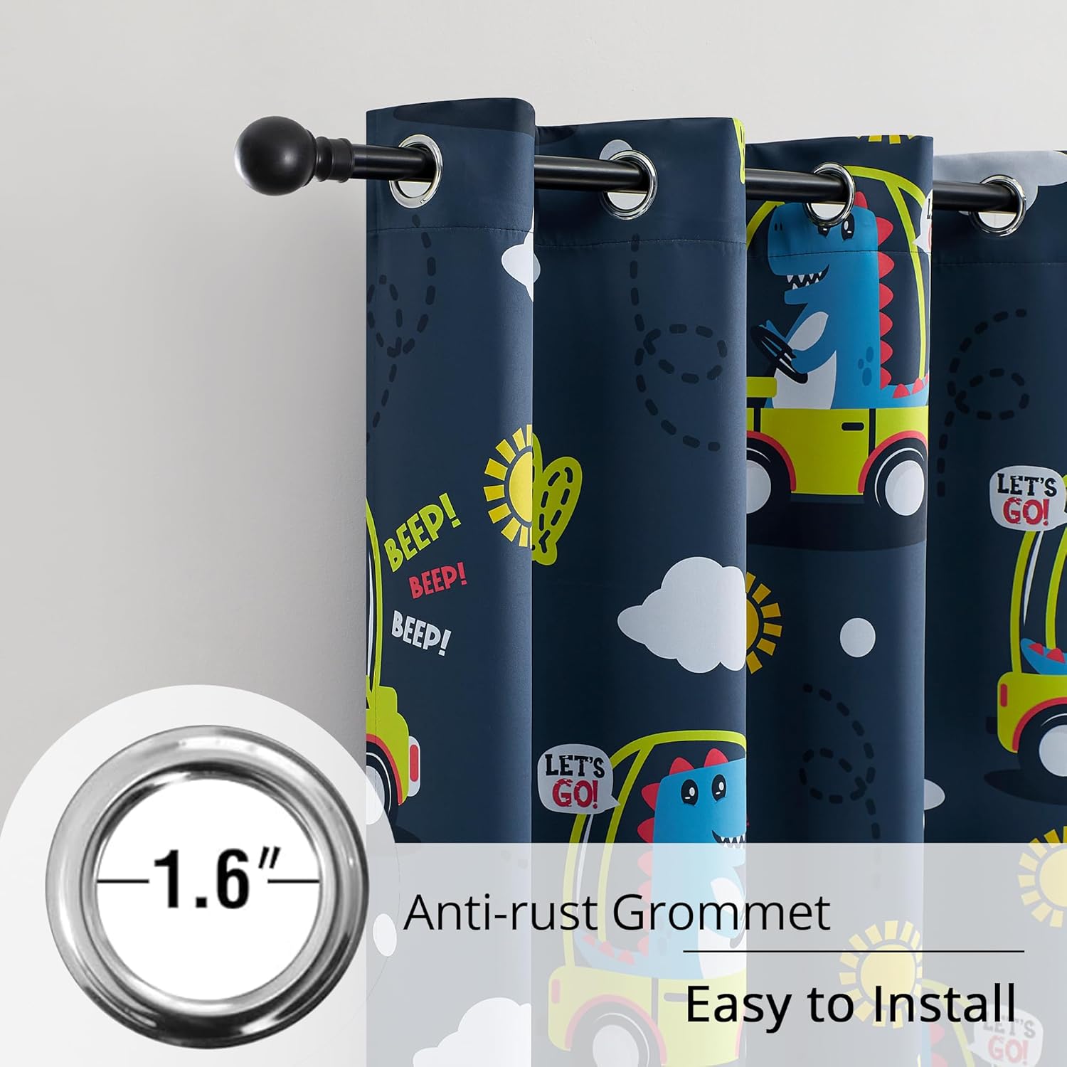 - Dinosaur Design: Our blackout curtains feature a playful dinosaur pattern that sparks imagination and adds a touch of adventure to any child's room. Perfect for nurseries, bedrooms, and playrooms, these curtains create a fun and vibrant atmosphere.