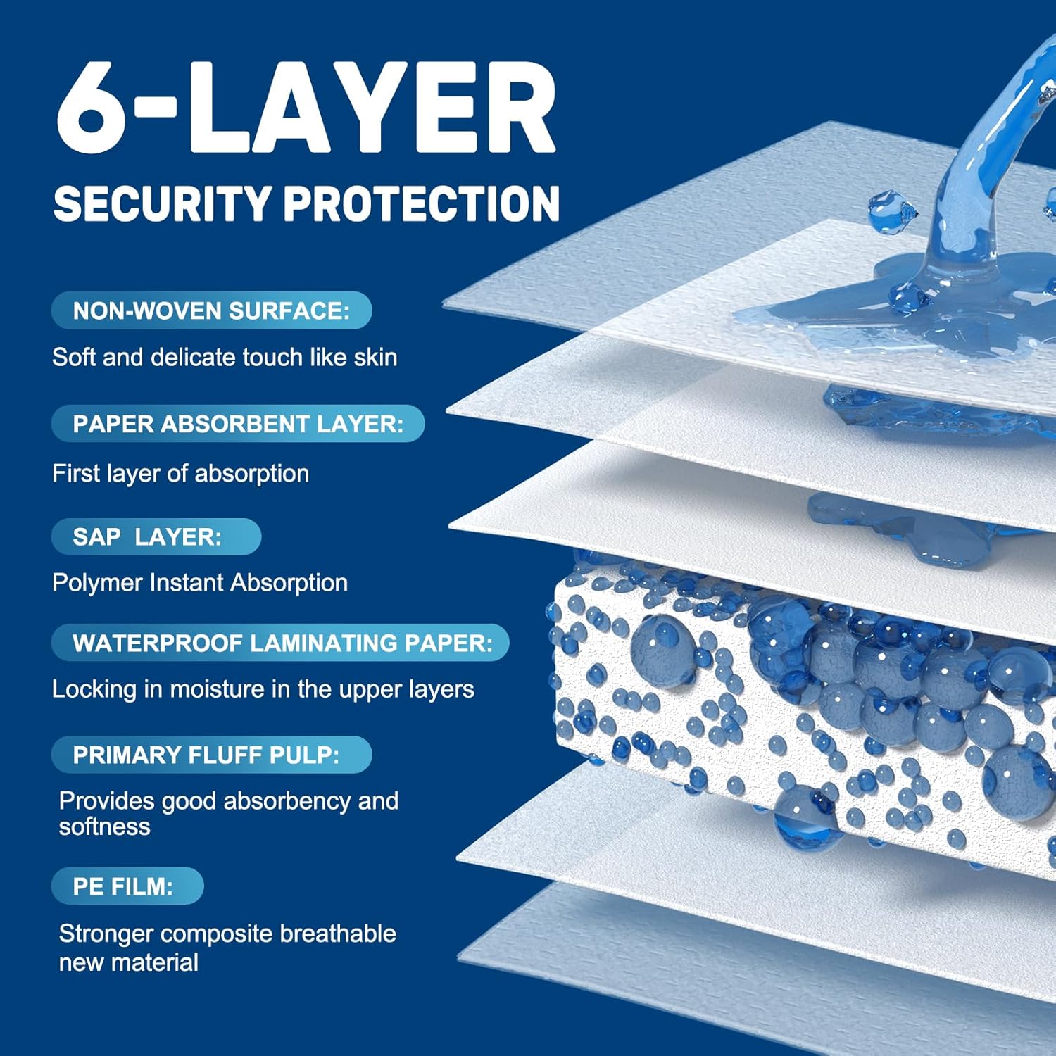 - 【Degradable Non-Woven Layer】: Our Incontience pads use 3S non-woven fabrics with high strength and excellent water absorption. Twice thicker than regular pads, but softer, gentler and stronger.