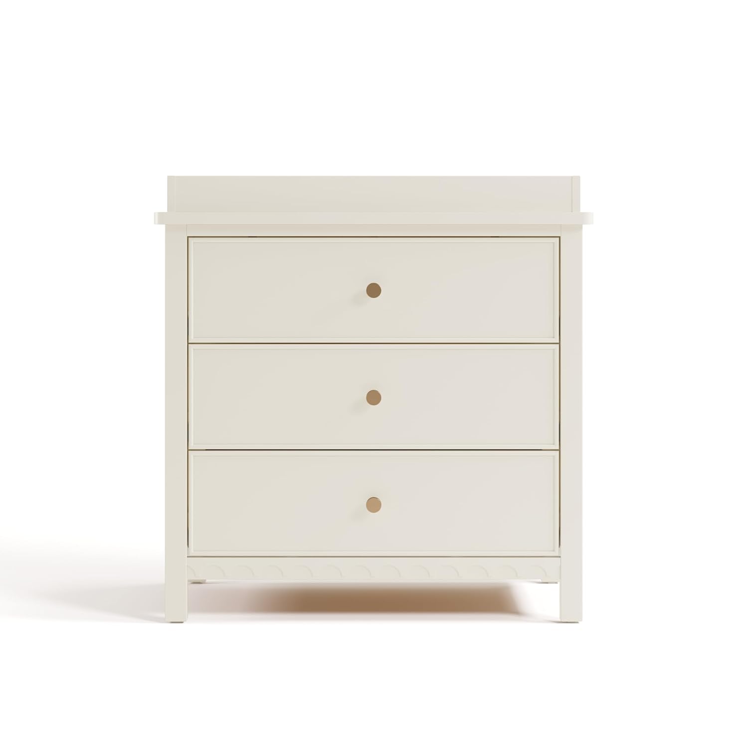 - REMOVABLE CHANGING TABLE TOPPER AND TIMELESS DESIGN: With its scalloped carved detailing and sturdy wood construction, the Sasha adds a timeless vintage style to your nursery or kids' bedroom. The changing topper is removable, allowing the chest to be enjoyed in the kids' bedroom long after the nursery years.