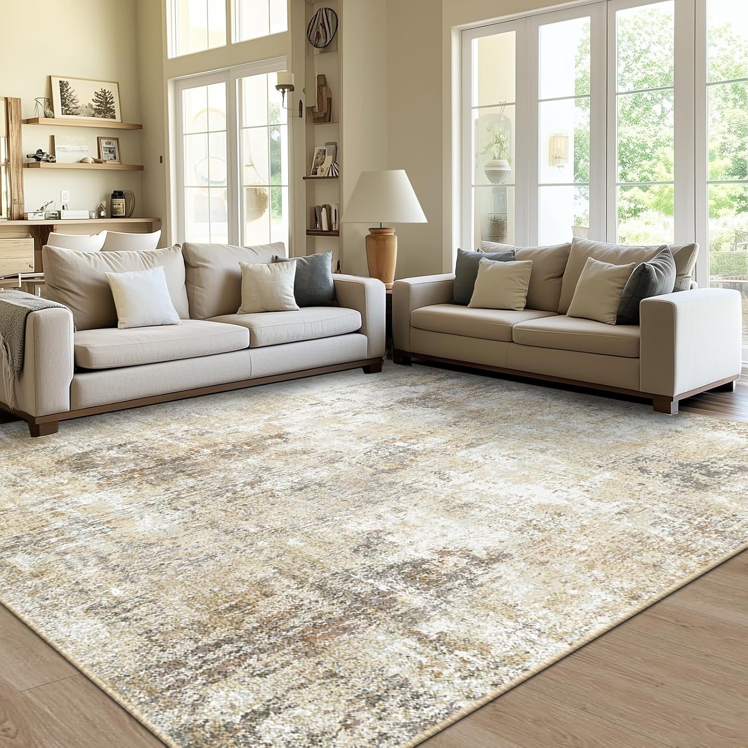 Washable Area Rugs 6'x9' Non-Slip Modern Abstract Soft for Living Room Entryway Bedroom Nursery, Print Pattern, Neutral Brown Gray