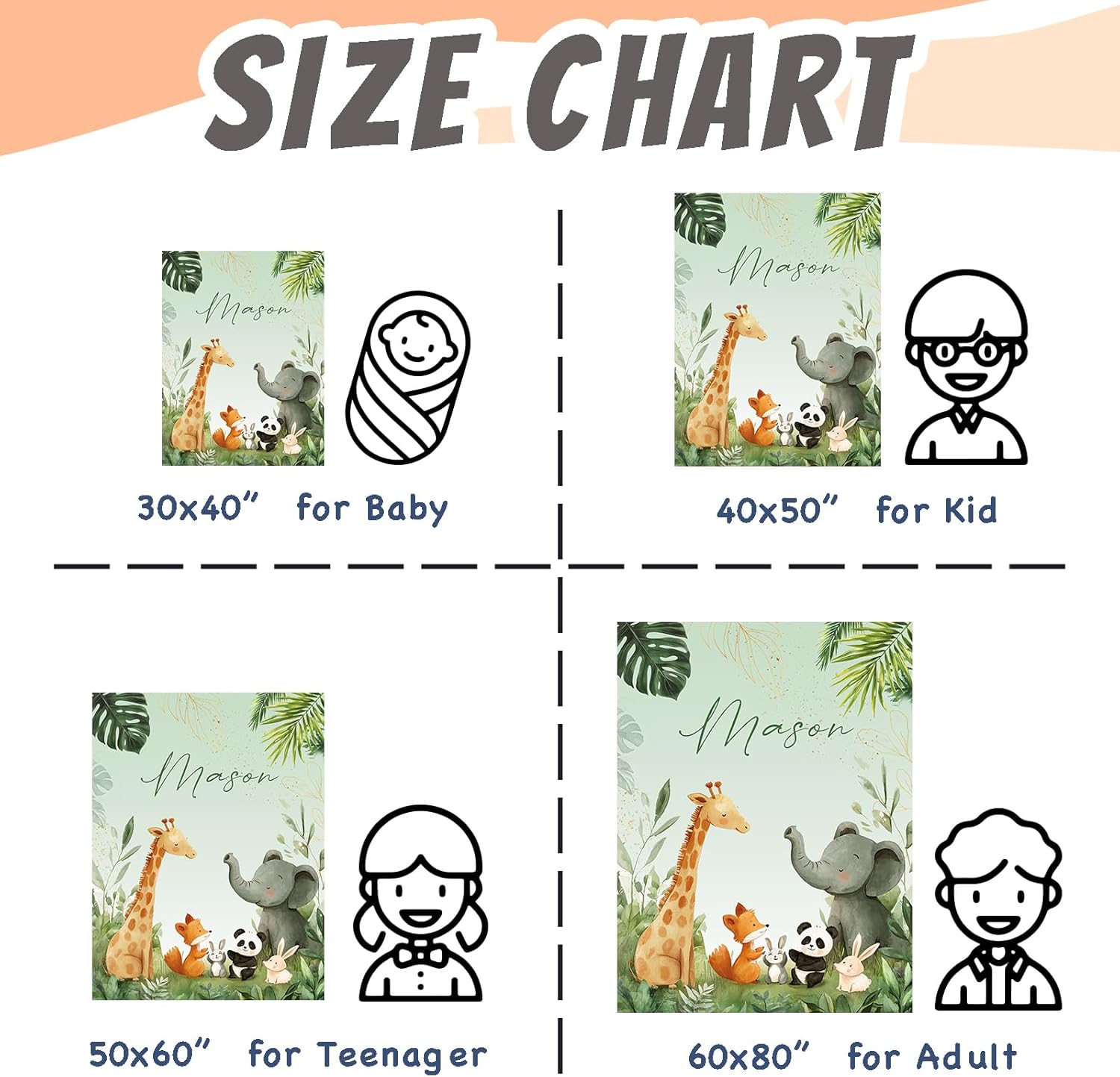 - 【Multiple Sizes】Our personalized throw blanket is available in four sizes, 30''x40'', 40''x50'', 50''x60'' and 60''x80'', making it suitable for babies, kids, teens, adults and even pets. Use the small size as a changing blanket or crib throw, and the larger sizes for snuggling on the sofa or bed with family and friends.