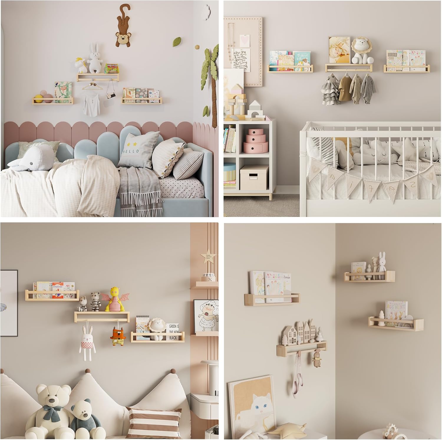 - [Ample Storage Space] - Measuring 16.5 inches, these nursery shelves offer ample room for organizing children's books, toys, photos, and other small items. They encourage a love for reading while keeping spaces tidy. With 0.6” thicken panels, each bookshelf can hold up to 30 LBS
